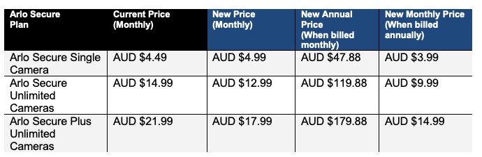 Arlo Aussie Secure subscription Plans (valid from 3 February)