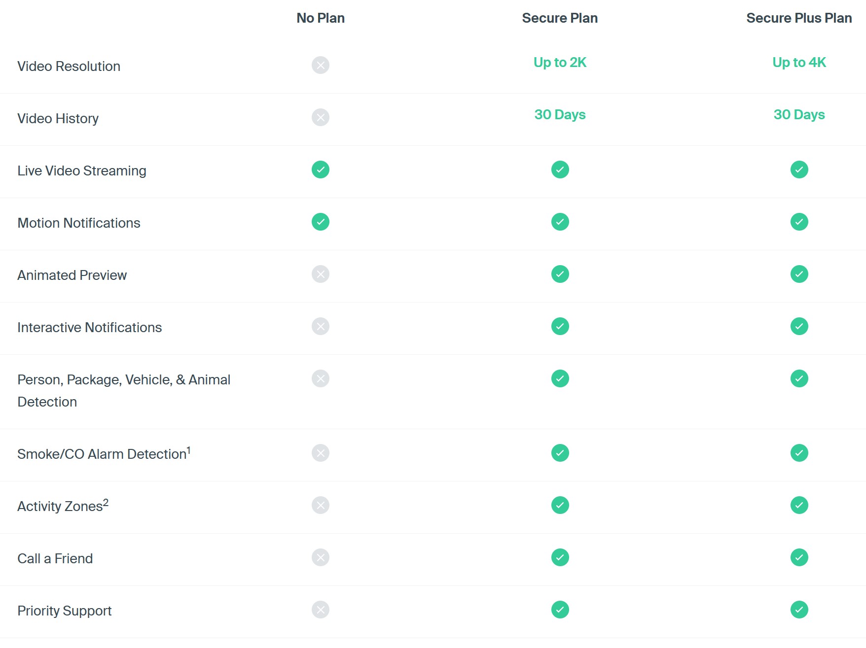 The Arlo Secure Plus Unlimited Cameras plan builds on the Arlo Secure features. These include 4K video cloud storage for compatible 4K recording devices, such as the leading Arlo Ultra 2 Security Camera and more.