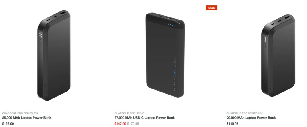 - 27,000mAh (99.9Wh) LED light readout $179.95 but on special