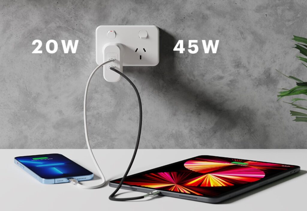 They come in 12, 18, 24, 25, 30, 32, 45, and 60W outputs, some with USB-A, USB-C or both outputs. They are suitable for Apple iPhone, Samsung, Google Pixel and almost any Android device. These generally output PPS fixed 5V/2.4A with 30W or above using 5V/3A/15W, 9V/2.2A/20W, 9V/3A/27W, 12V/1.67A/20W, 15V/3A/45W and 20V/3A/60W – not PD variable volt/amps as GaN can.