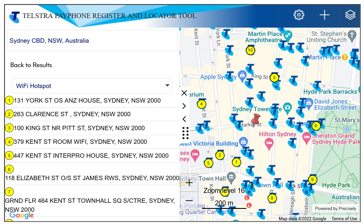 Customers need to be within around 25 metres to access free Wi-Fi from a Wi-Fi-enabled Telstra payphone.
