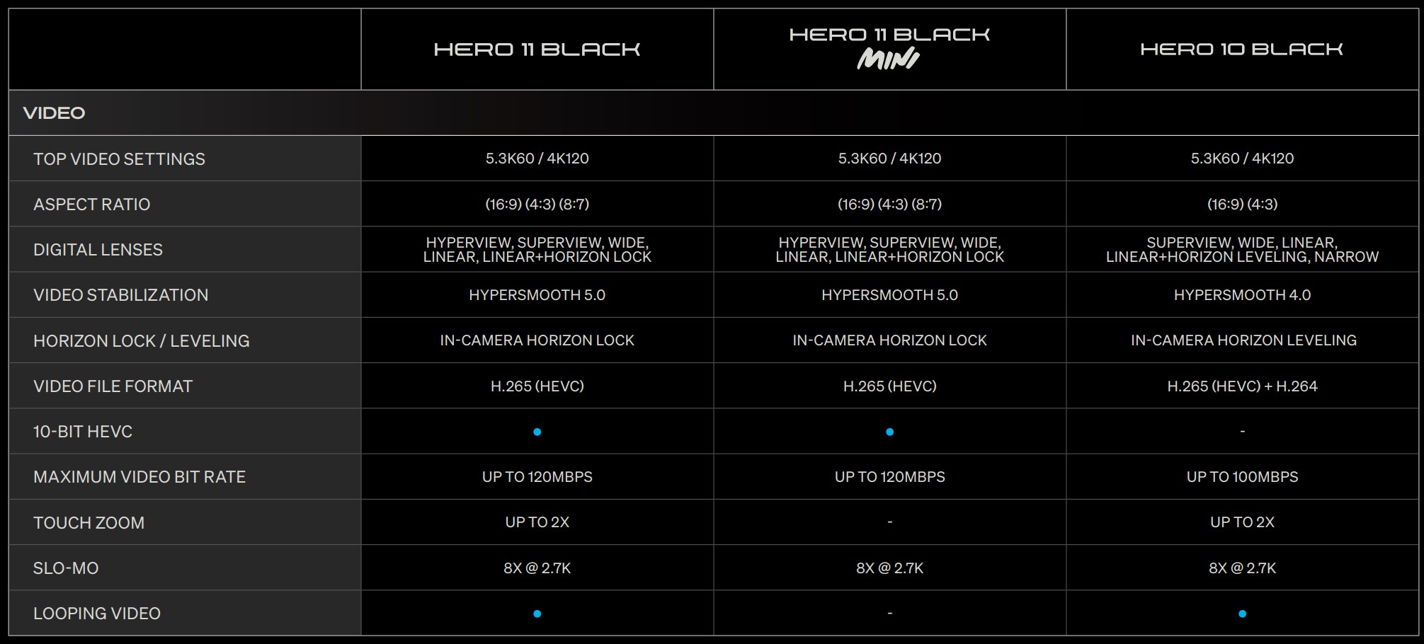 | HyperSmooth 5.0 | Off, On, Boost or AutoBoost |