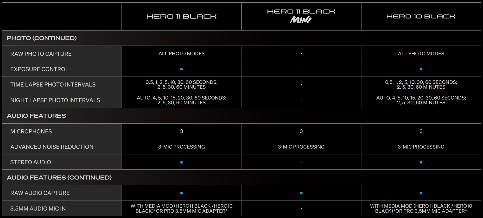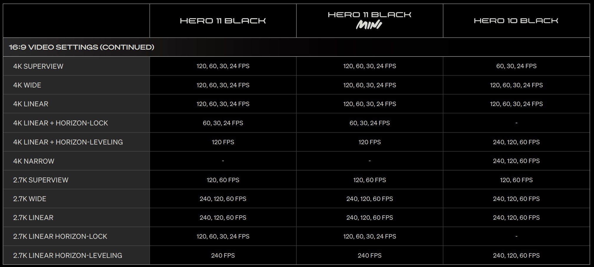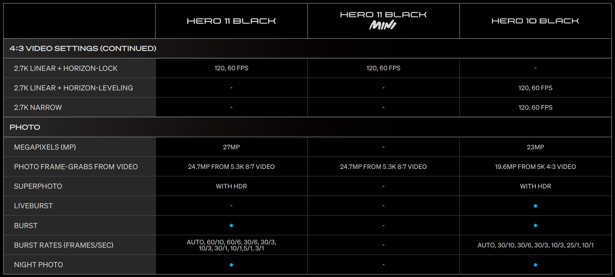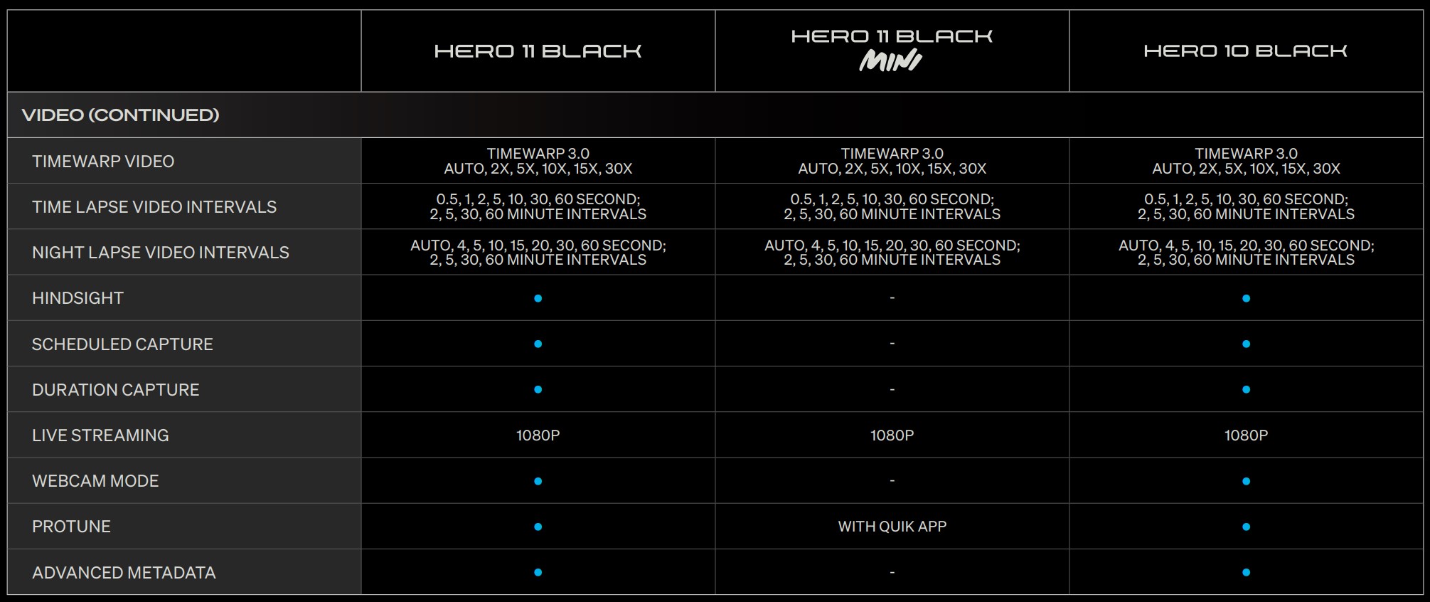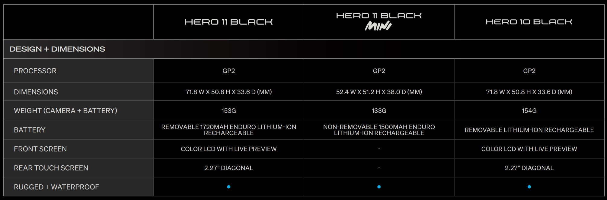 Quick facts – GoPro Hero11 Black with reference to the GoPro Hero11 Mini