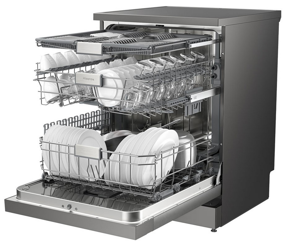 There are three new models – a 14-place HSCE14FS ($699), a 15-place HSCM15FS ($999), and the top-of-the-line 15-place HSGP15FB at $1499. It is the one with ConnectLife Smart Home connectivity, UV hygiene Guard (UV germ killer), auto-door open (aids drying) and three racks (dishes, glasses, and cutlery), each with a dedicated spray arm. It was very quiet and has a self-cleaning program.
