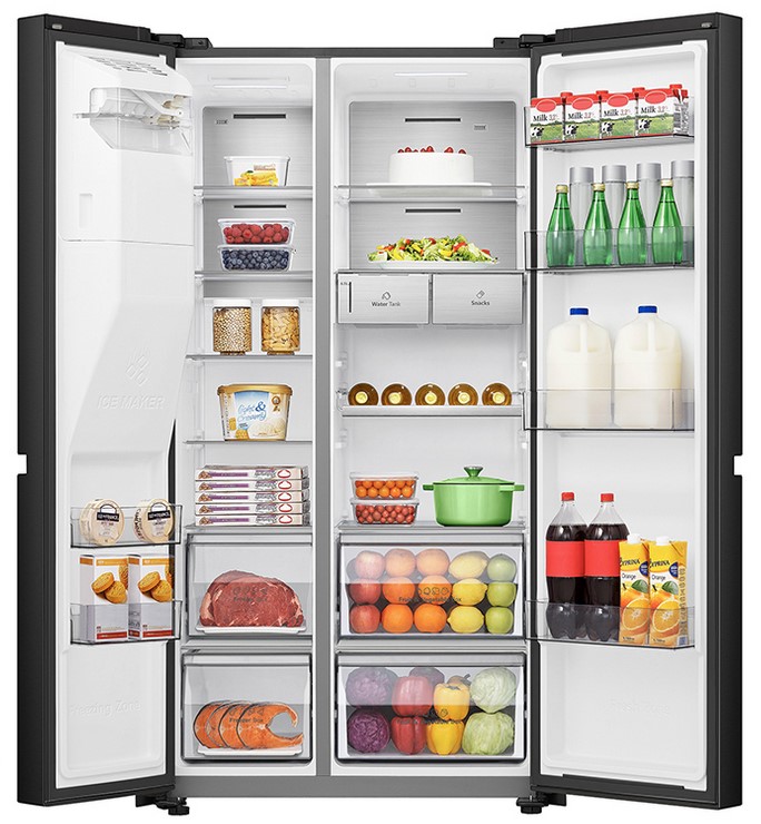 The 632L model on display, HRSBS632BW, had PureFlat (no pipes at the back), in-built water and ice dispenser (crushed or cubed, no plumbing required, although there are plumbed-in models, too), a new super-freeze mode, and ConnectLife smart home connectivity at $2499.