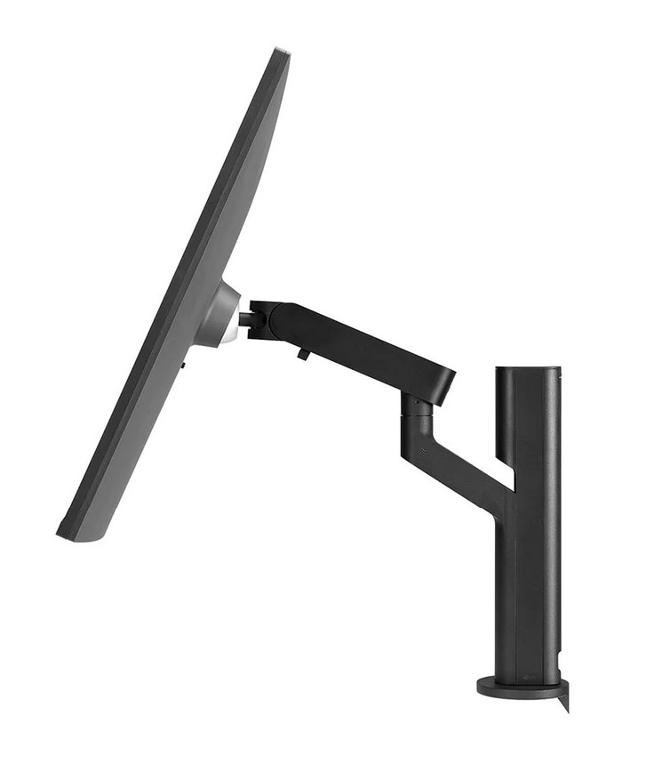 The LG Ergo stand can adjust height and tilt, swivel, or pivot. It saves desk space as it clamps securely to most desks and tables. The double-height LG DualUp monitor also reduces side-to-side head movements and may relieve consumers who experience neck pain.