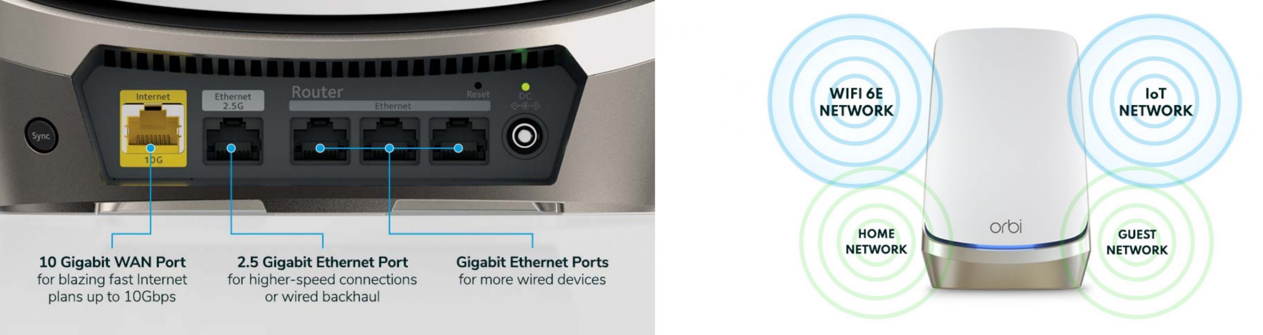 Orbi has a 2.5Gbps Ethernet WAN port to connect satellites to the router. This is vital in multi-story homes where the Wi-Fi signal cannot get through solid floors or extend to outbuildings.
