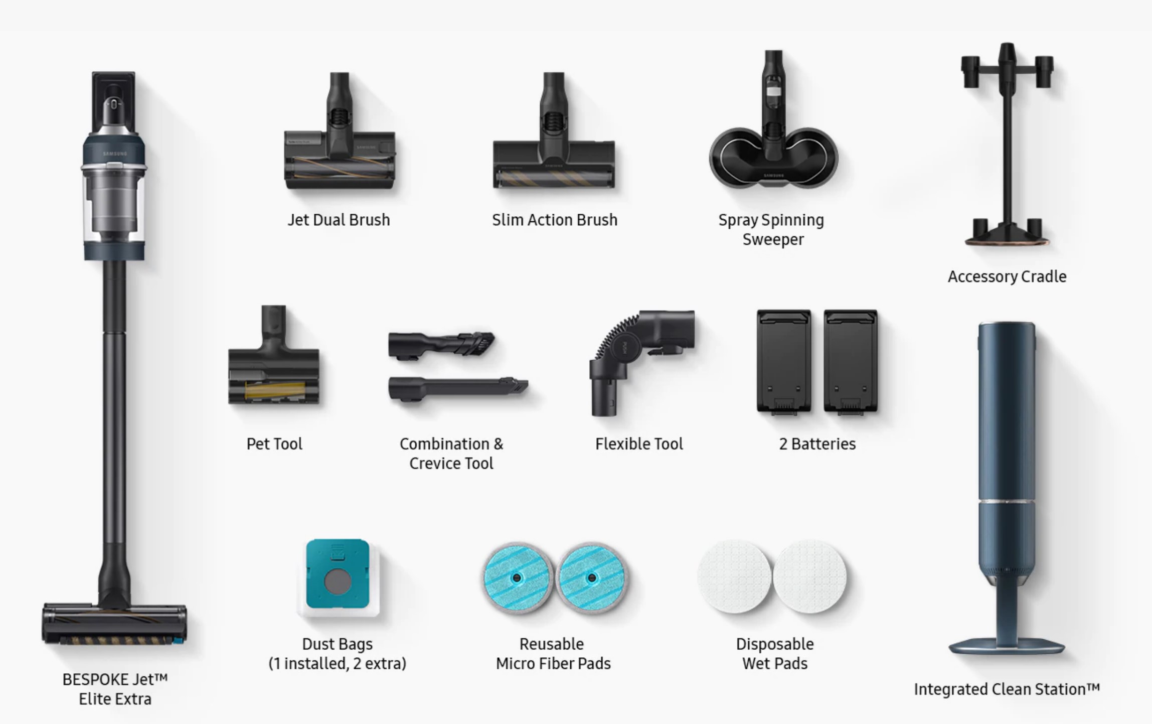 | Elite Extra includes four tools + Spinning Sweeper & 2 Brushes Website | VS20A95993B | $1399 |