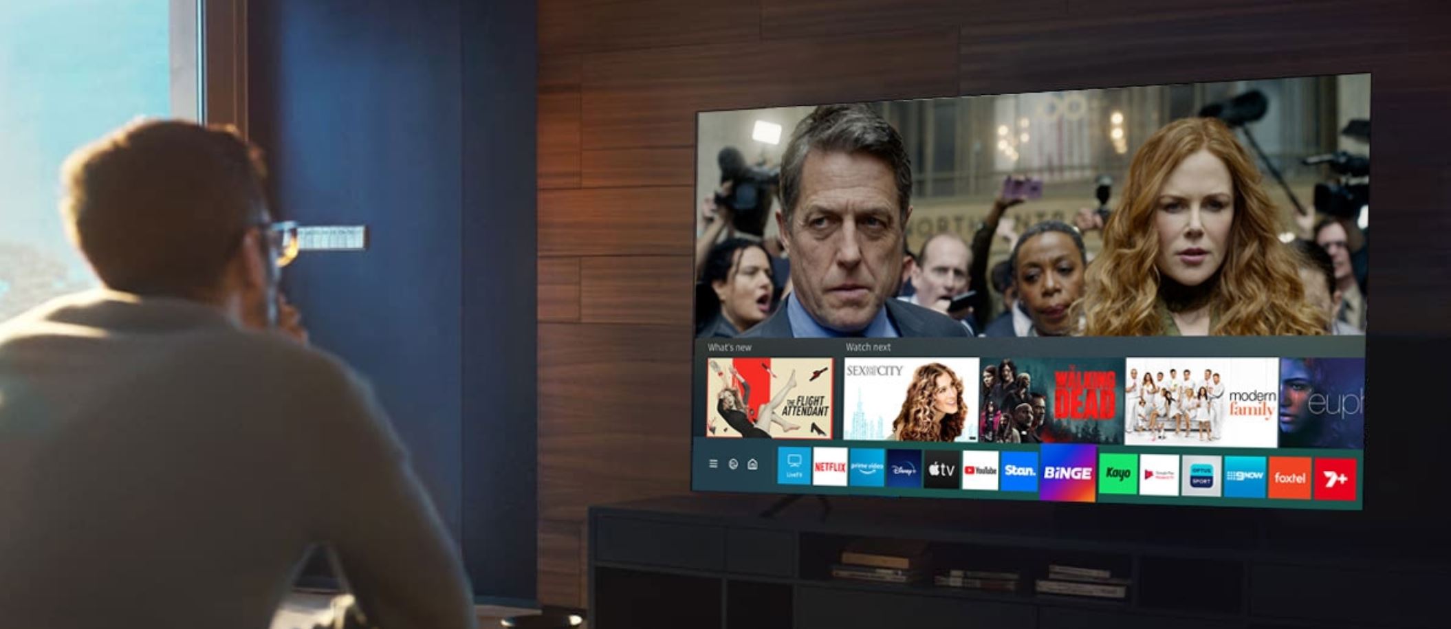Q-Symphony three-dimensional audio experience allows Samsung’s Neo QLEDs and soundbars to work together, has been improved with added synchrony. This enables the soundbar and TV speakers to work together, providing a more expansive soundscape.
