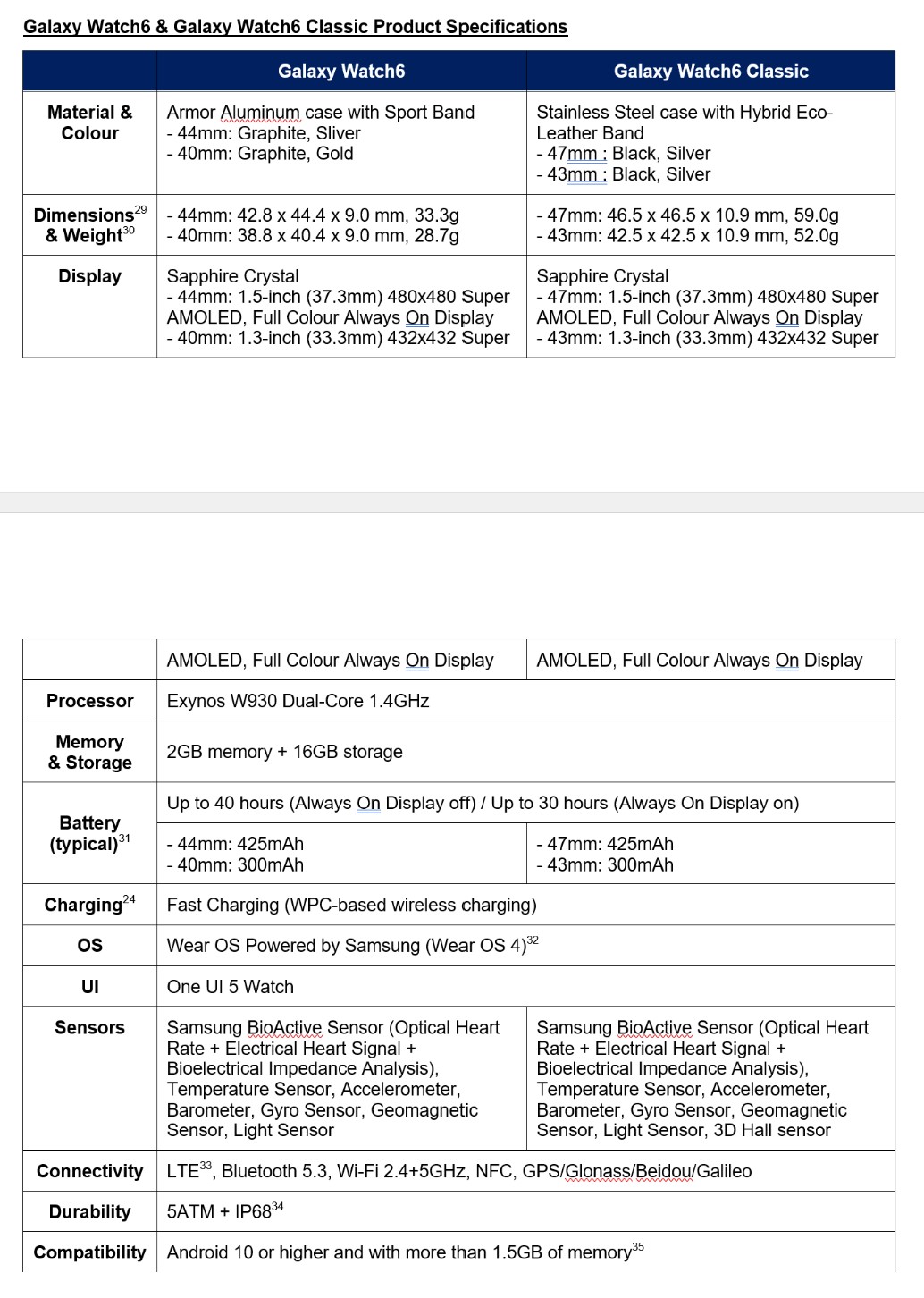 Samsung Galaxy Watch6 Base Specs