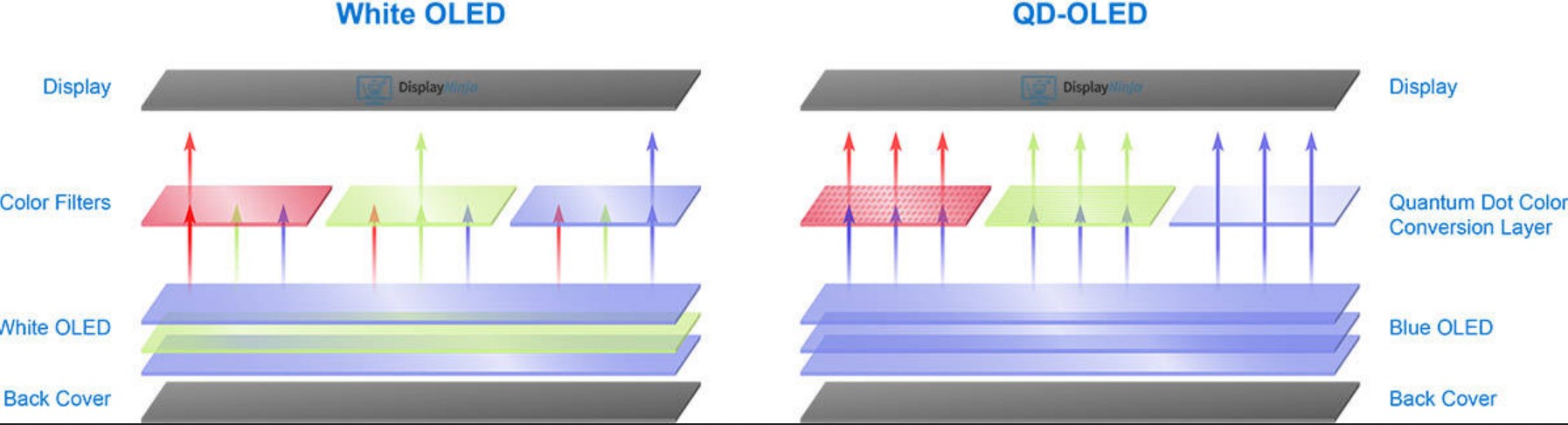 To be clear, Samsung uses OLED as the backlight and QD to produce colour.