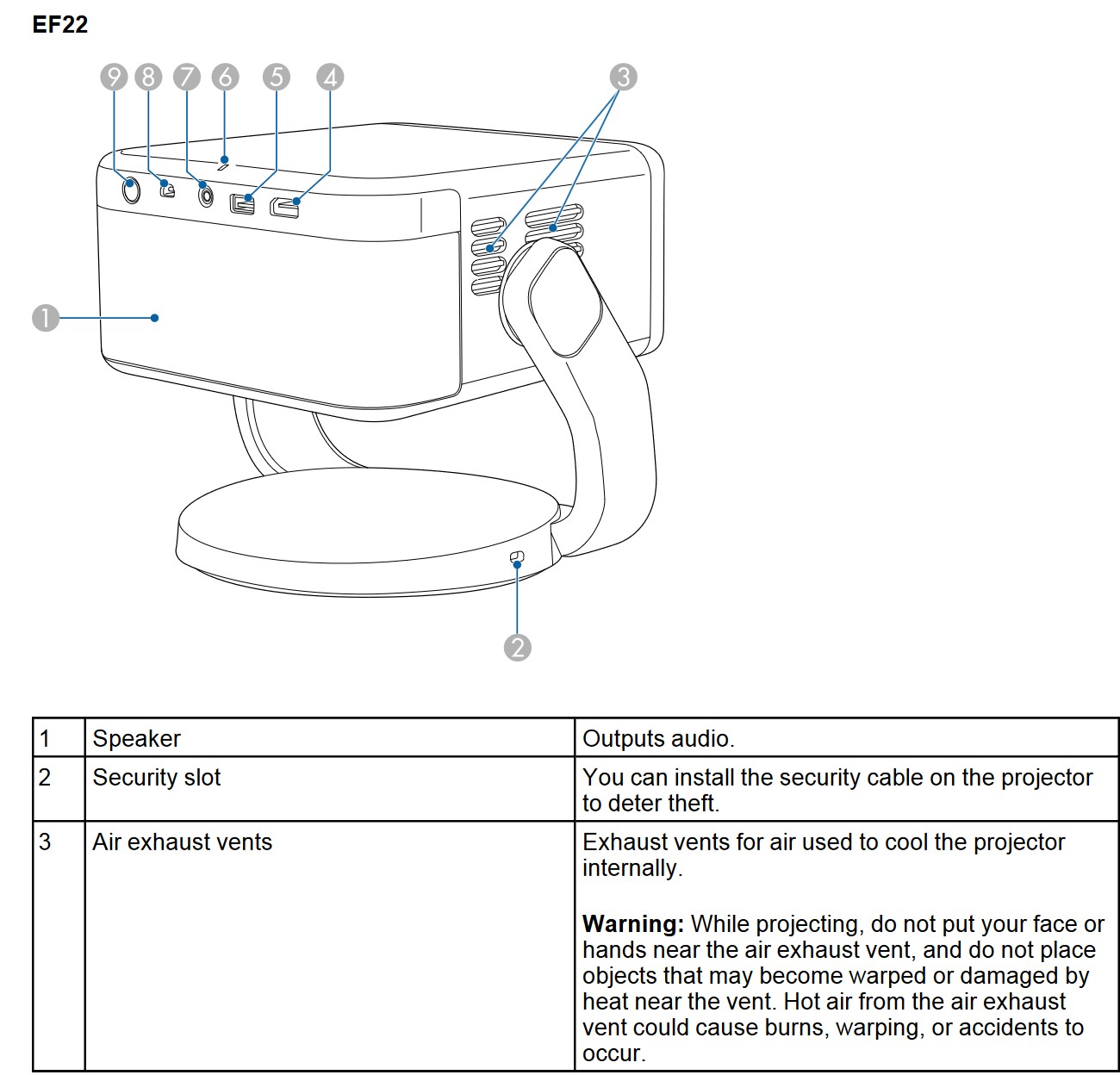 The Epson EF-22 (B for Black chassis) projector is essentially a $1299 EF-21 with a 700g 360° pivoting swivel gimbal base that allows for easy projection on walls and ceilings.