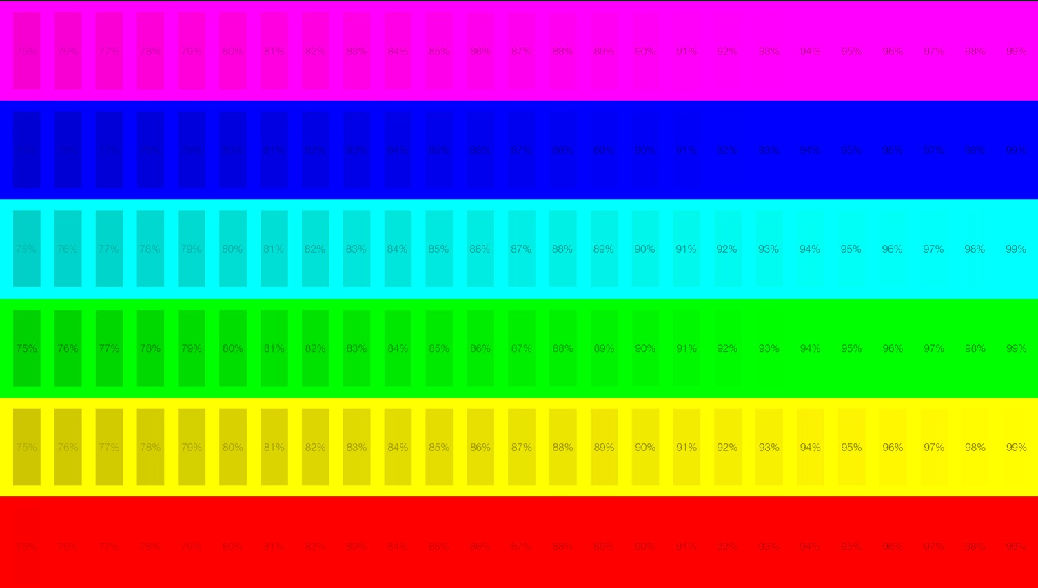 Out of the box, Delta E on Vivid (default) is in the high threes (<4 is good), but each viewing mode changes this. Increased brightness is the enemy of contrast (black) and real colours. We experimented for a few hours and got the Delta E to around 2. Our final custom settings were: