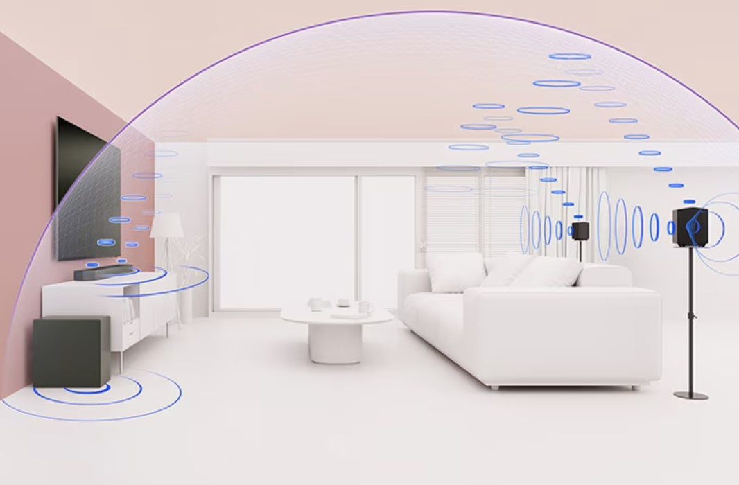True discrete DA soundbars with rear speakers can create a dome about 3m high x 4-5m in diameter, matching the ideal viewing distance from a 4K TV.
