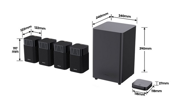 Regrettably, Hisense has not revealed what is inside, but we deduce that there are twelve speakers over four satellite speakers