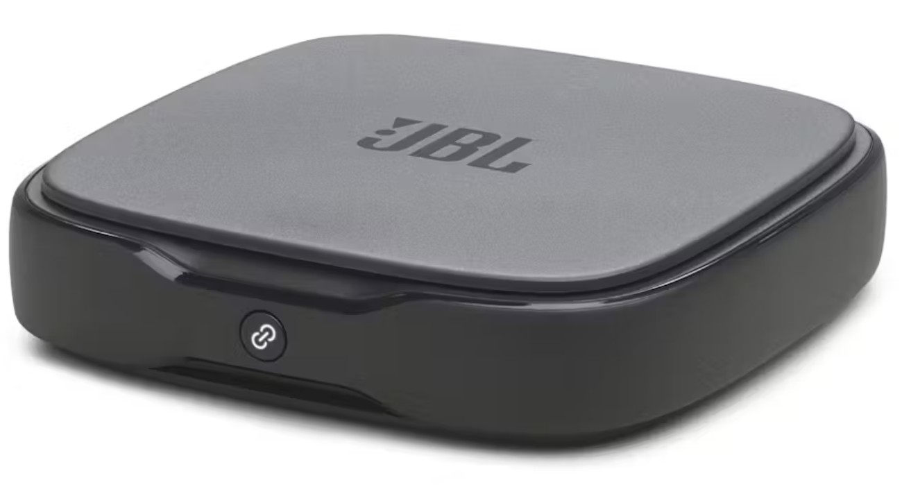 It is a separate wireless dongle that connects to your TV wirelessly to the soundbar, providing a lossless HDMI equivalent connection for PCM, DA and DTS:X. It allows for more flexible placement of the soundbar and is managed by the JBL ONE app.