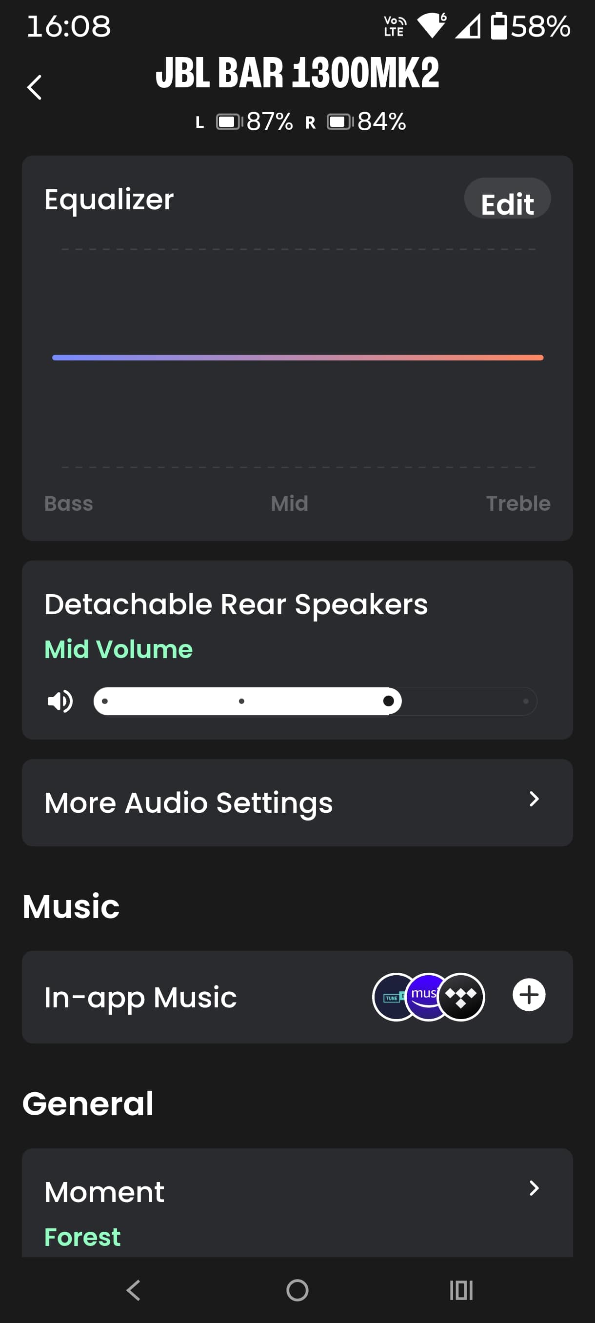 - Dolby Atmos/ DTS:X effect: middle (default), high or low.