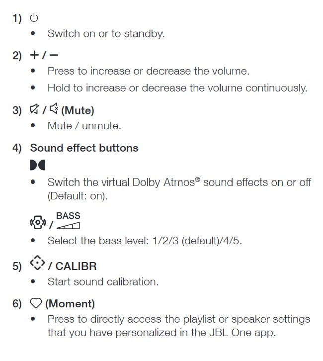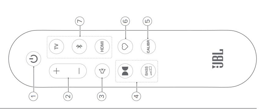 The non-backlit IR remote control is used mainly for setup, as the Bar is eARC/ARC CEC compatible and can be basically controlled by the TV remote. It can also learn your TV’s basic commands. We set up via the JBL One app.