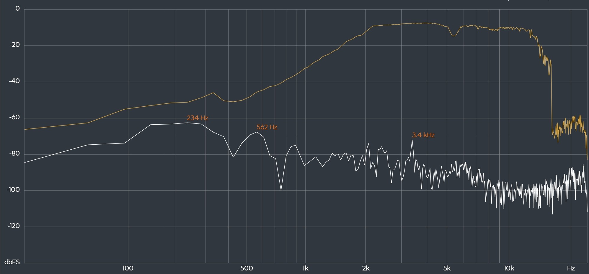 It was not what I expected, as these are supposed to be V-shaped and bass/treble-forward, but the native white noise generator is never wrong (and I retested several times). My only explanation is that the earbud test rig doesn’t work well with these oblong buds. Update:  Notebookcheck confirms the raw frequency with very strong treble.
