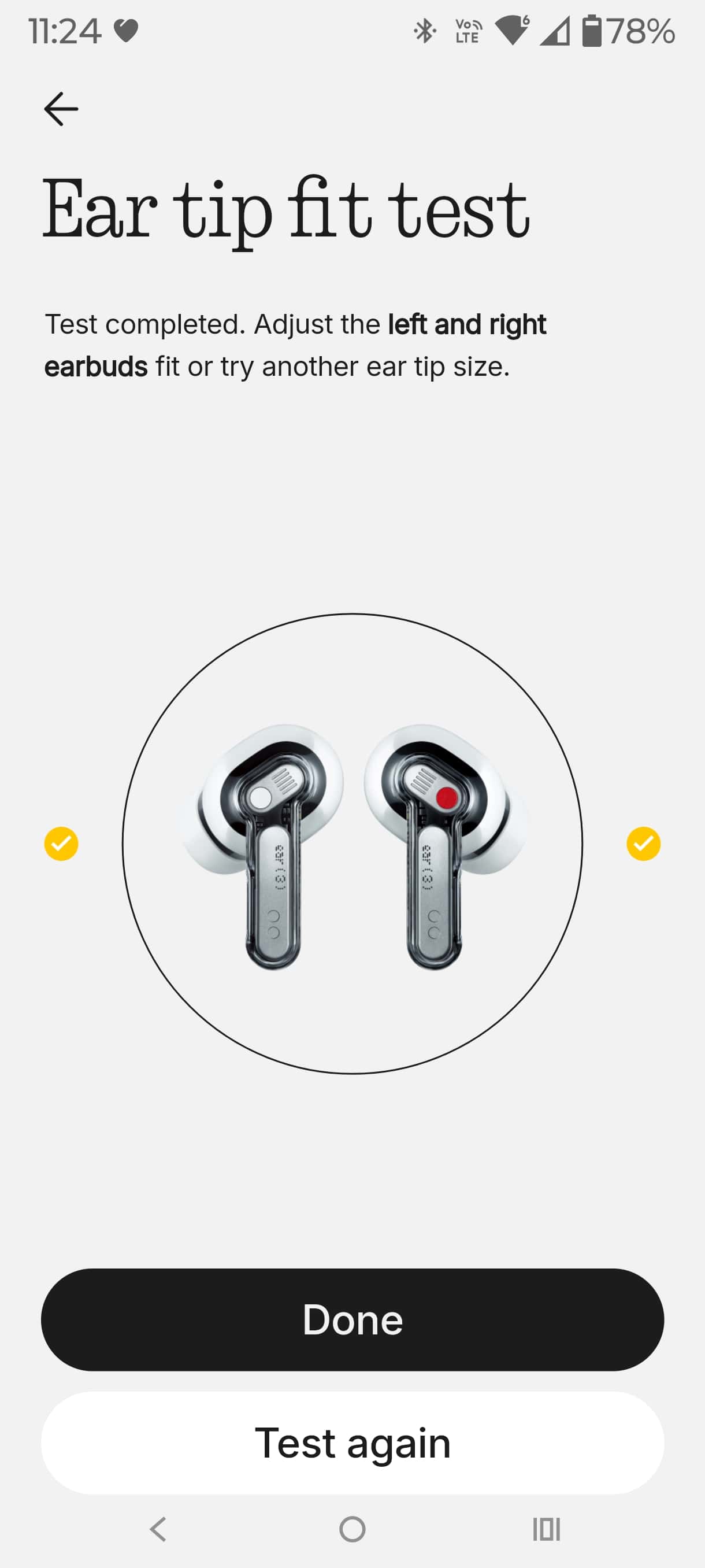After a couple of weeks of casual use, we can say that these are moderately comfortable (for our ears). The ANC relies on both AI and ear seals. We found it necessary to go up one tip size, which initially felt too big. Our eight-hour test saw us remove them three times.