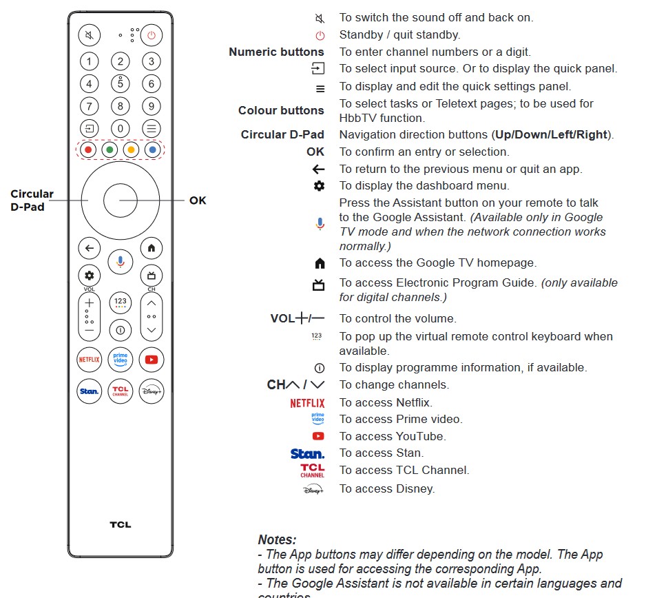 The RC833A features black plastic, non-backlit, IR and Bluetooth capabilities, and is voice-capable, utilising two AAA batteries. TCL has sensibly left the numeric buttons, so you don’t have to wade through an EPG to change channels. There are six presets for this otherwise standard Google TV remote.