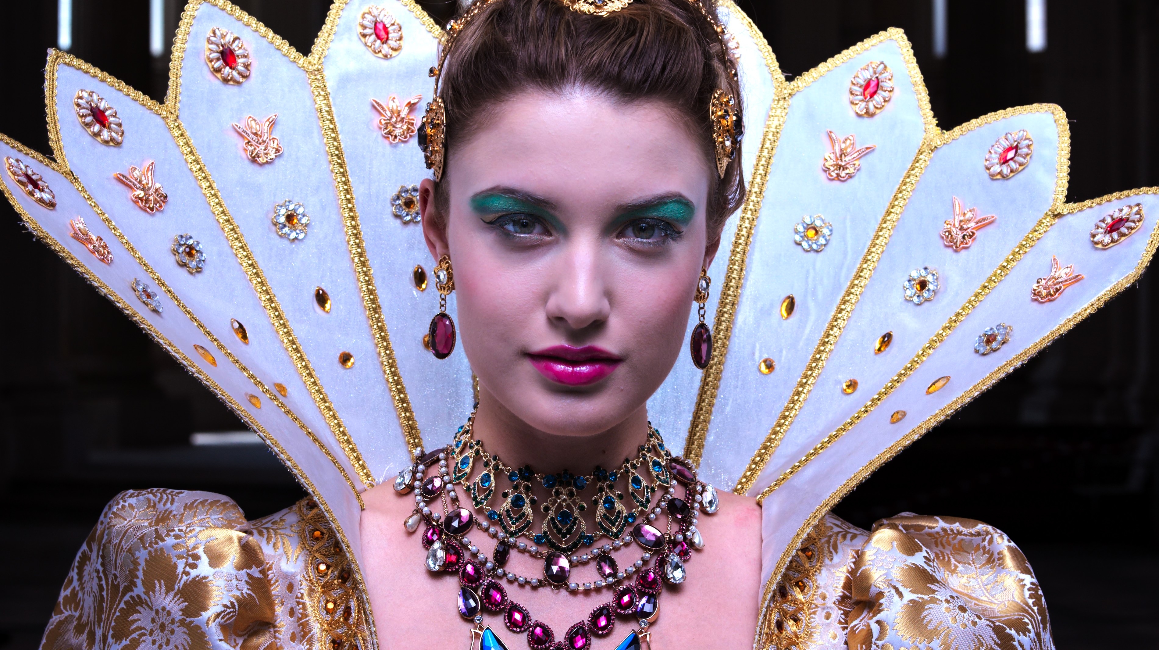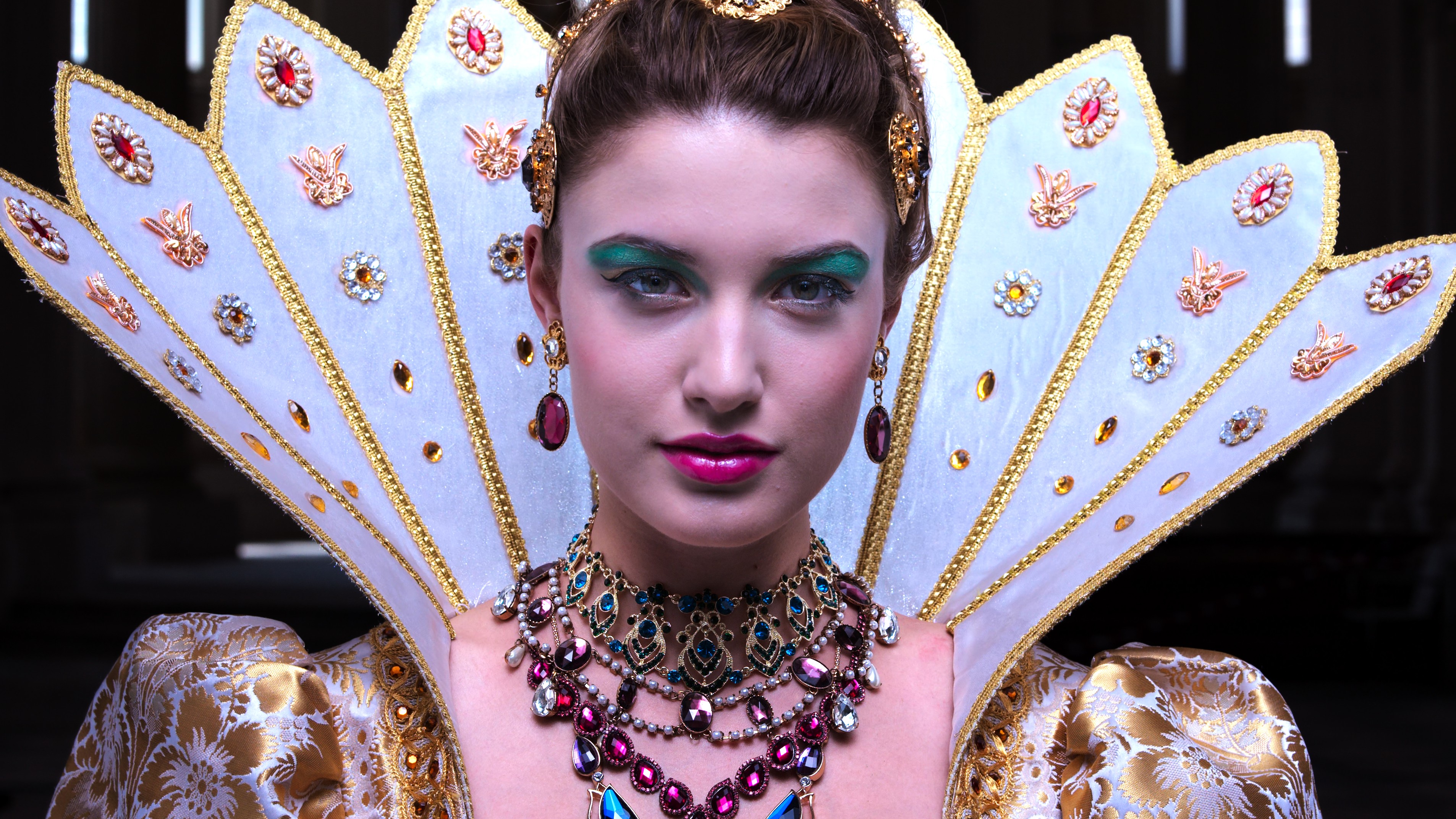 Below is the same image. Look for differences in the black background, lipstick and eye shadow and details in the hair texture.