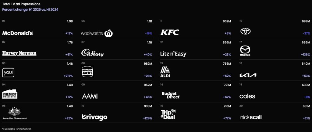 For example, Youi’s ad impressions surged dramatically (+215%) and it became the #3 advertiser in AU (up from #13).