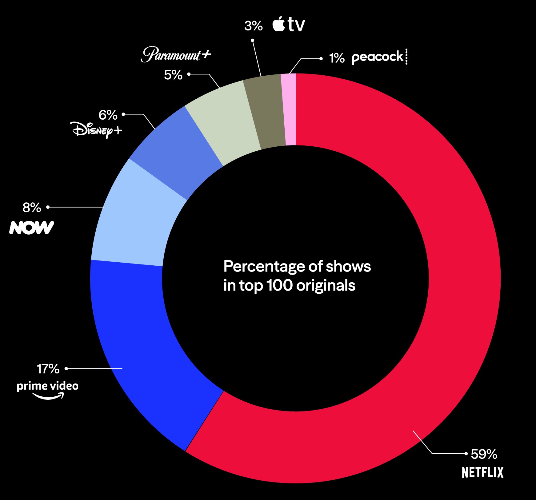 Percentage of streaming services (similar for US/UK)
