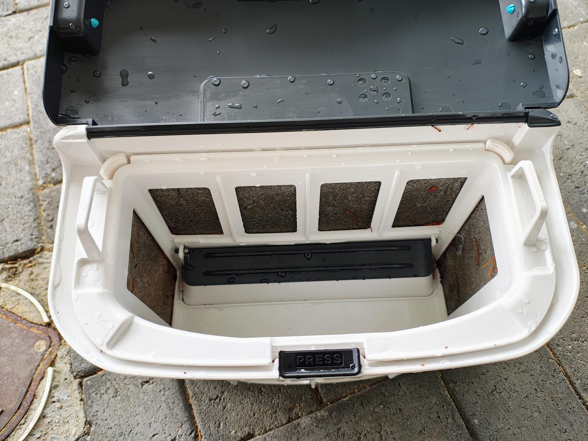 It features variable suction and dual active front and rear silicon rollers. The tile line was particularly dirty from the tree, and once again, it cleaned very well.
