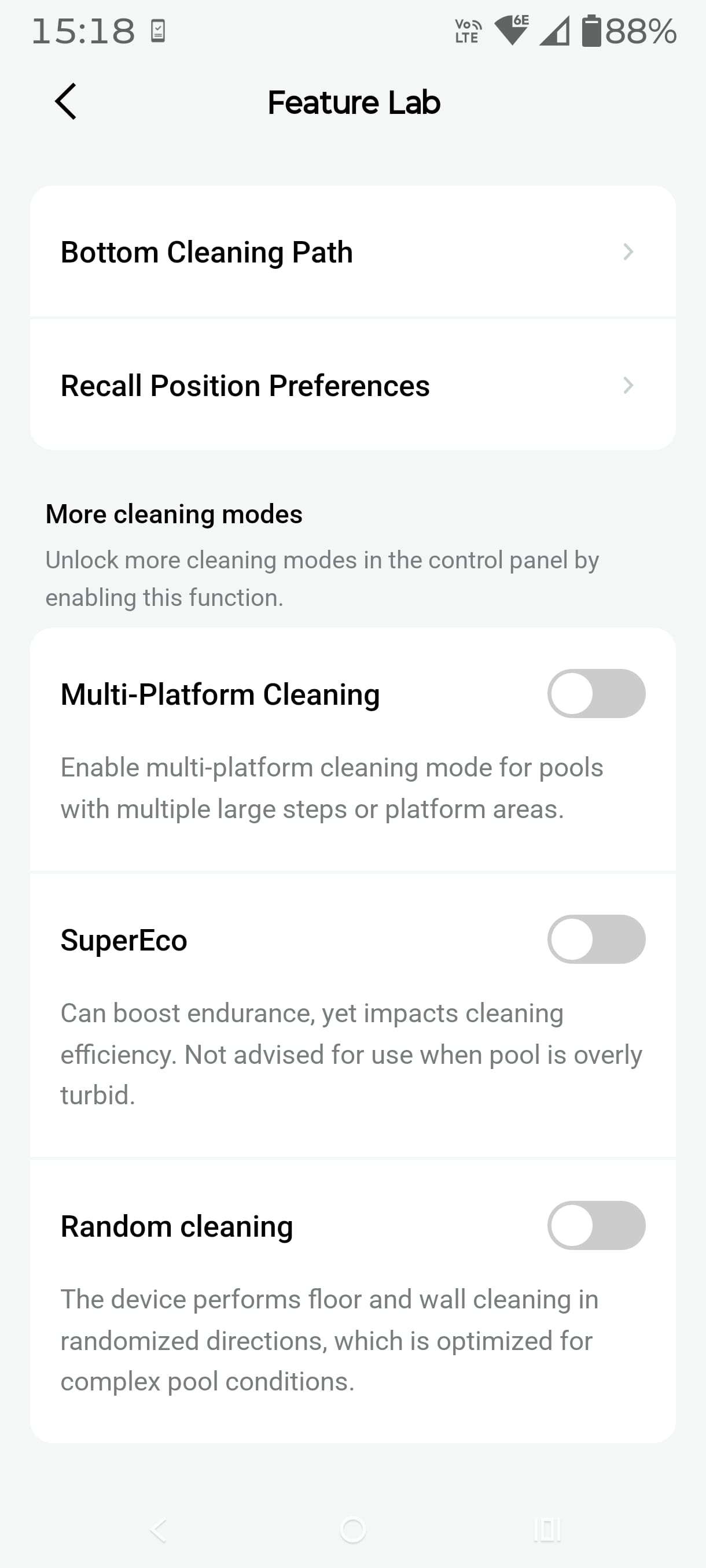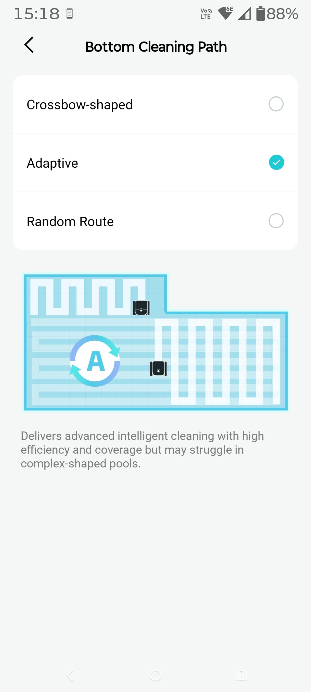 He noted that the curved fillet (which defeats lesser poolbots), when set to ‘Adaptive’, added about 20 extra minutes of cleaning time as it ensures that the fillets were cleaned both in the floor clean and the wall/tile line clean.