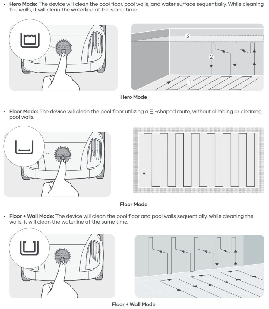 I really like that it goes lengthways (Hero Mode) up and down the pool and then into an odd-shaped corner where it changes to crossways. Interestingly, in floor mode, it goes crossways over the floor.