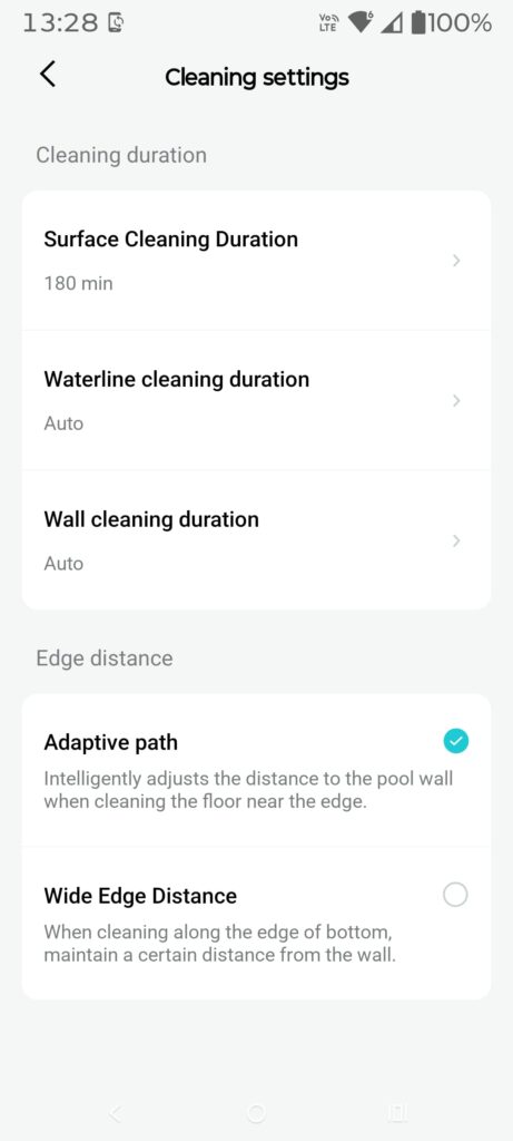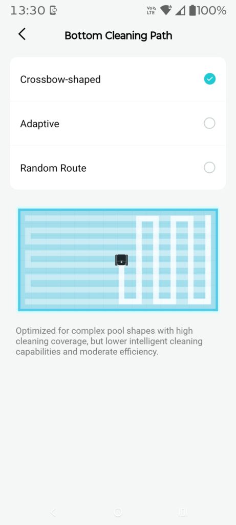 I like that it does a real map (it calls FlexiPath 2.0) because that means it recognises the shape of the pool and can work out the best way to clean it. It defaults to an S-Shape cleaning pattern and attempts to run the length of the pool first, then return to any odd-shaped areas.