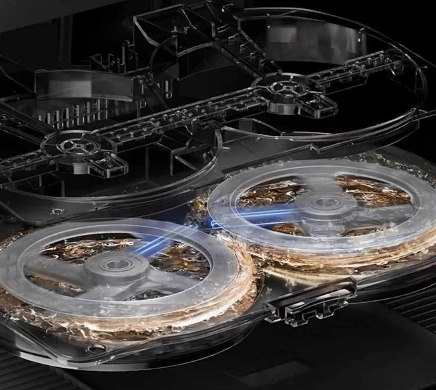 It has dual 136mm rotating mop pads with the right pad’s ability to extend to help edge clean. There is a tiny 55ml internal water tank, which means it needs to return to base every 10 minutes (adjustable by room, or 10/15/20 minutes).