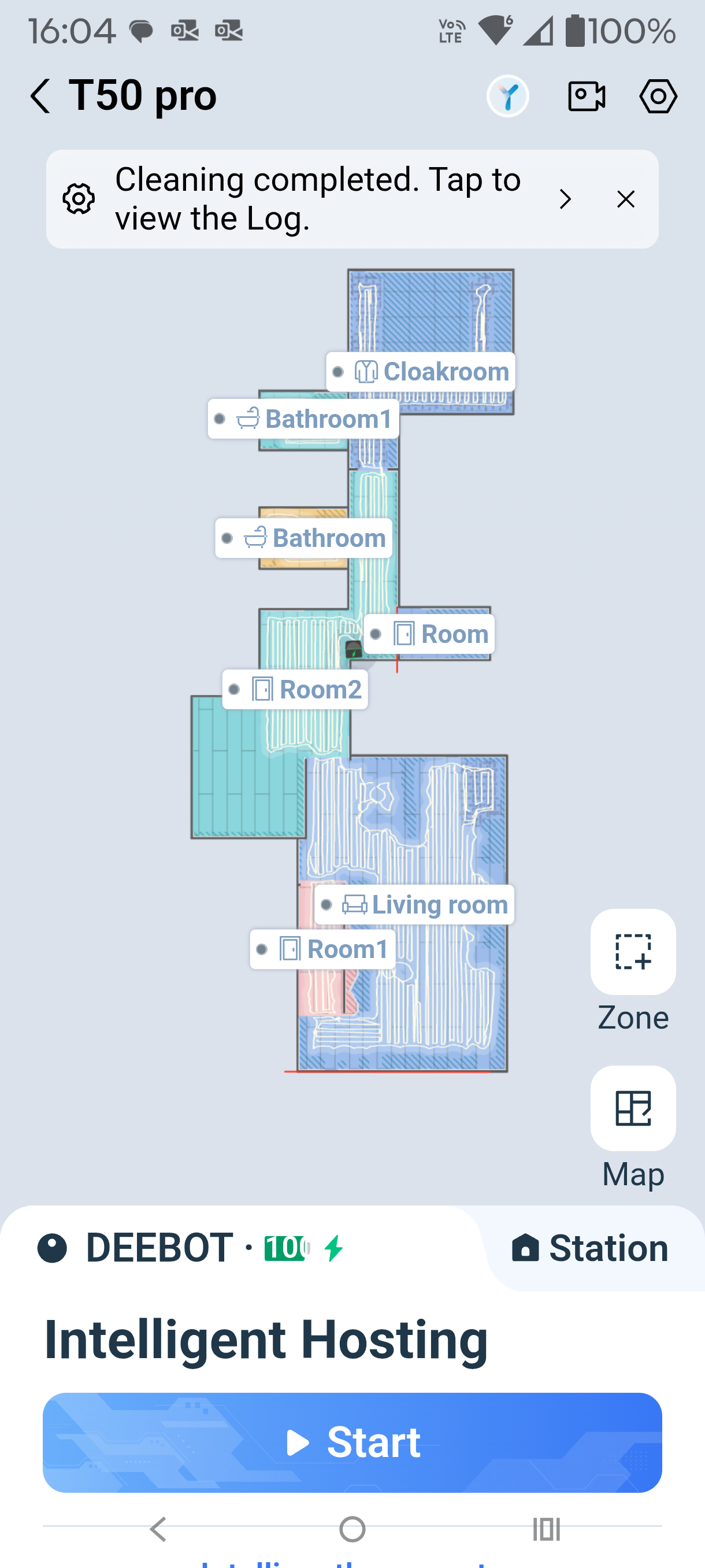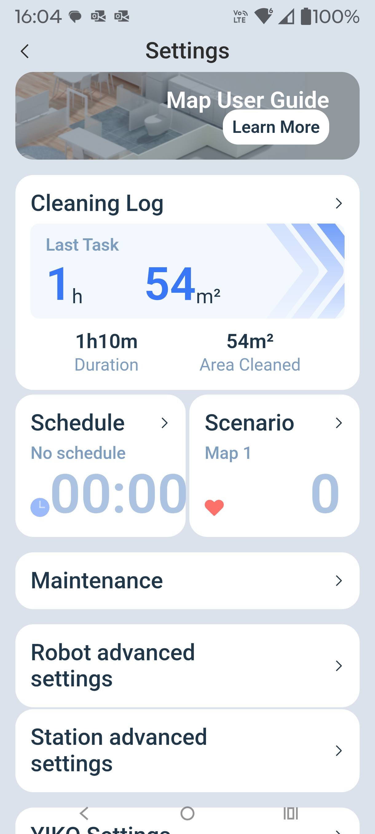 On the default Intelligent settings, it takes about 68 minutes to cover 50m2 or 1.3m2 per minute. That is not as fast as some, but it is well within limits. You can also select Quick, Standard and Deep and one of two passes (non-AI mode).