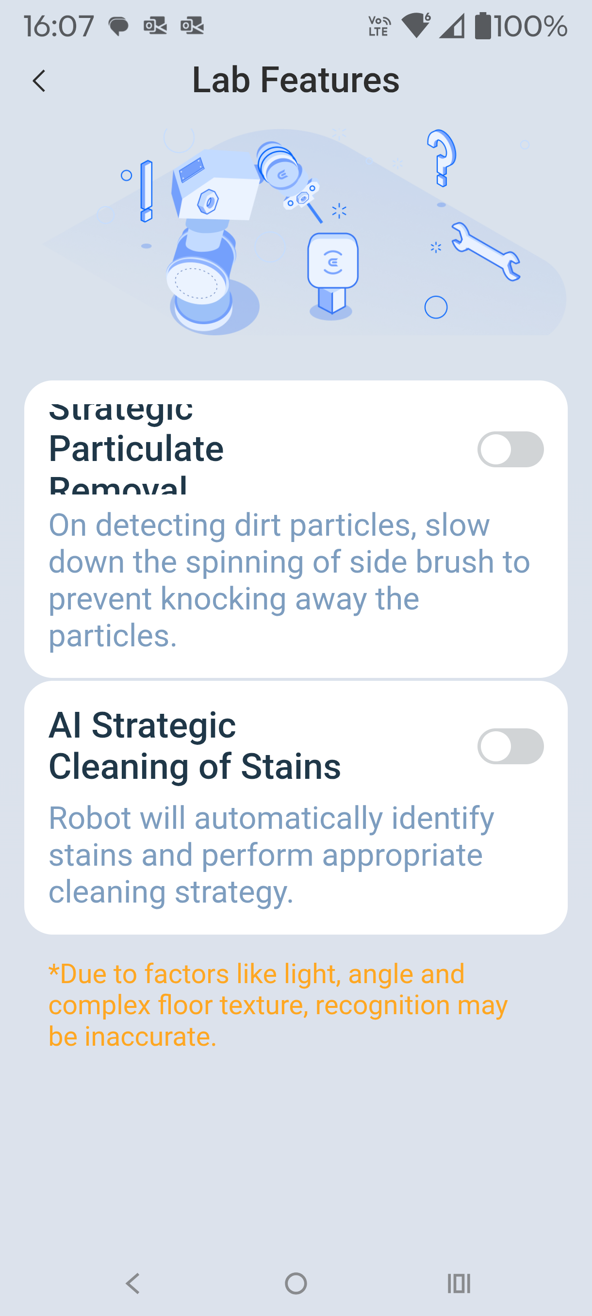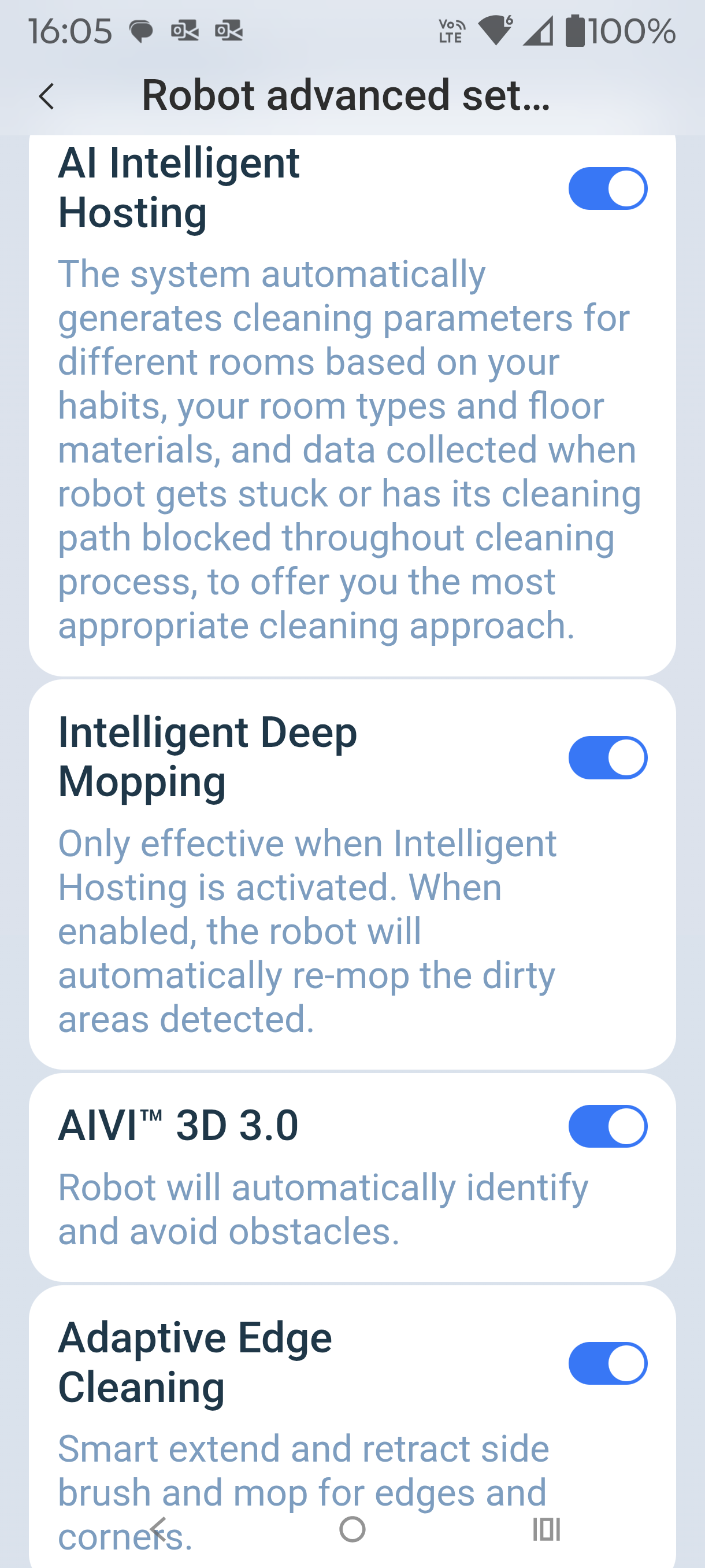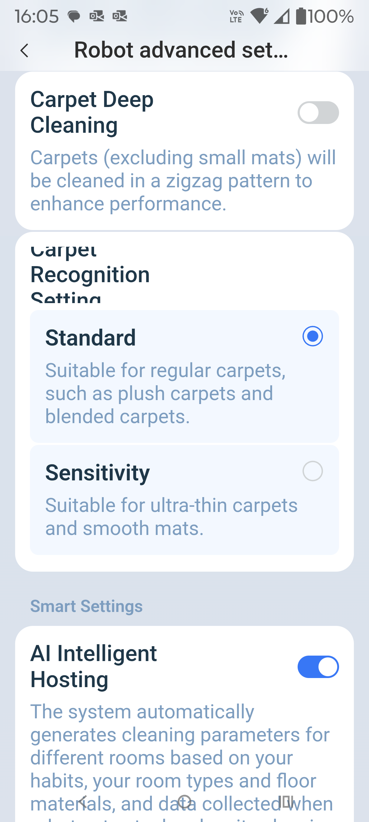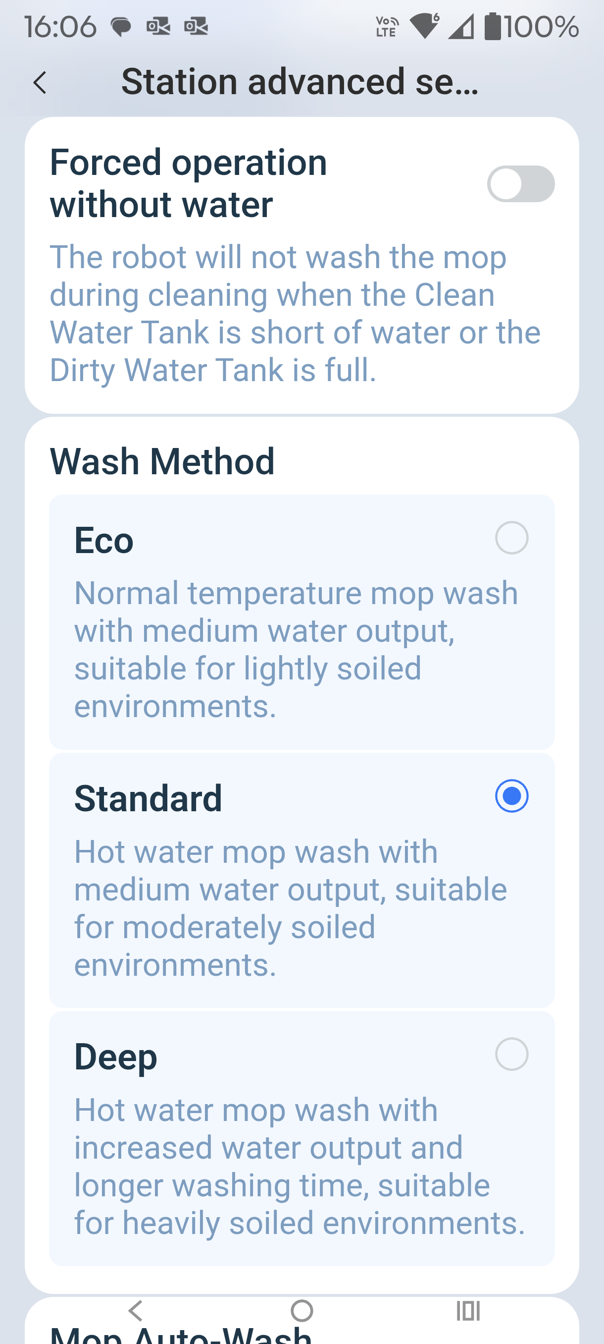 When I tested it, I set the app to AI Intelligent Hosting, Intelligent Deep mopping and AI Strategic Cleaning of Stains (these are not defaults). It did a better job on dried-on stains but took twice as long. The Ecovacs cleaning solution made a difference to stain removal.