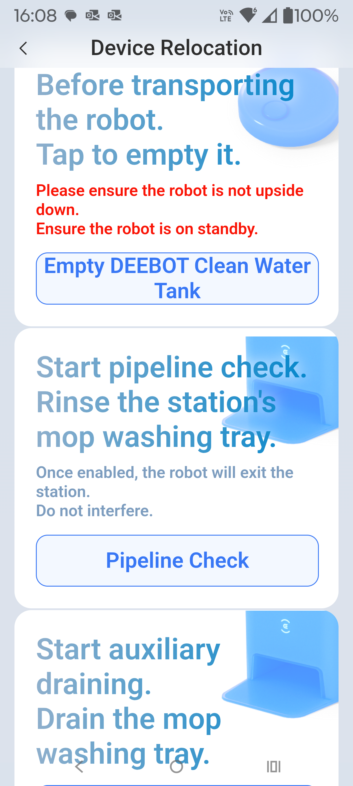 As we moved between the panellists’ homes, we found some water drops. The app has a relocation segment that drains the robot’s water tank and settings to drain the station’s water tubing.