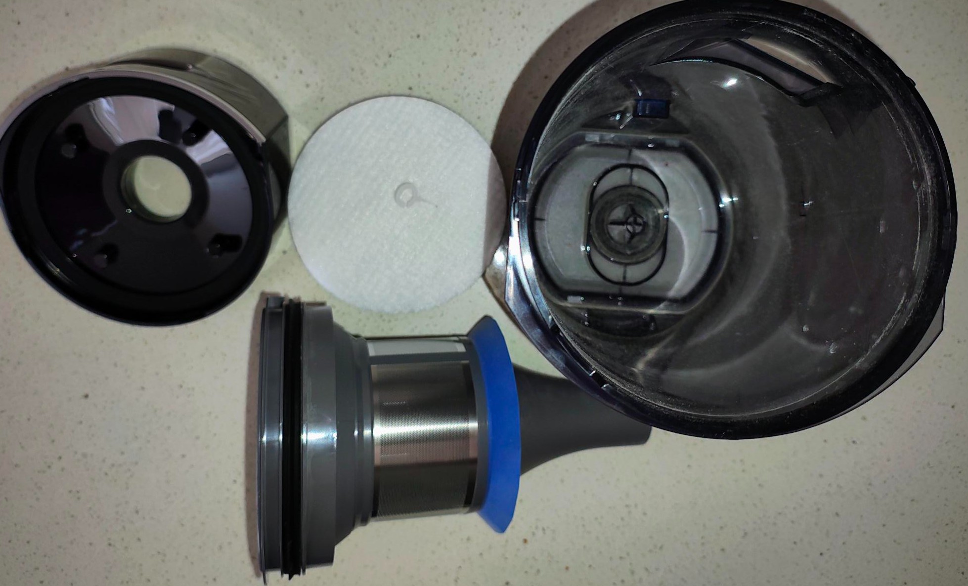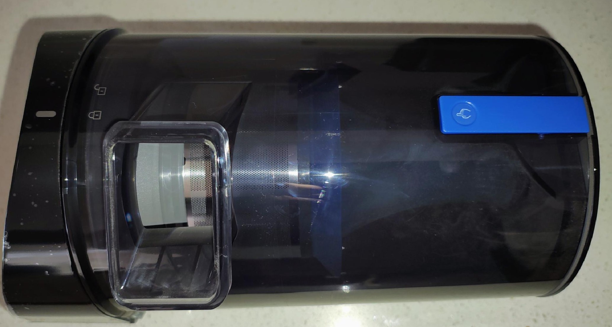 One thing we noticed over a few weeks was the buildup of dust inside the bin that takes the shine off its visage. A quick wash restores that. But every cyclone bin we have seen from Dyson to the cheapies eventually gets pitted and marked,