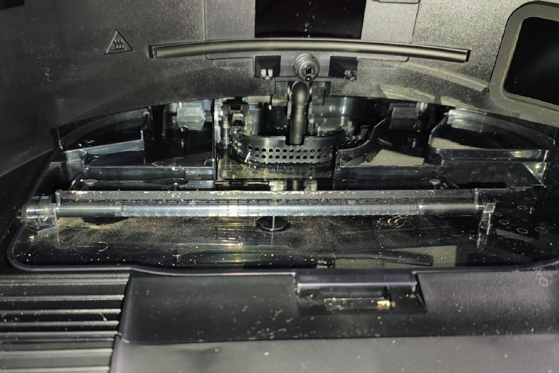 It detected most opaque or coloured liquids and lifted the main roller brush and retracted the side whisker. We hope a firmware update will enable AI to detect all liquid messes.