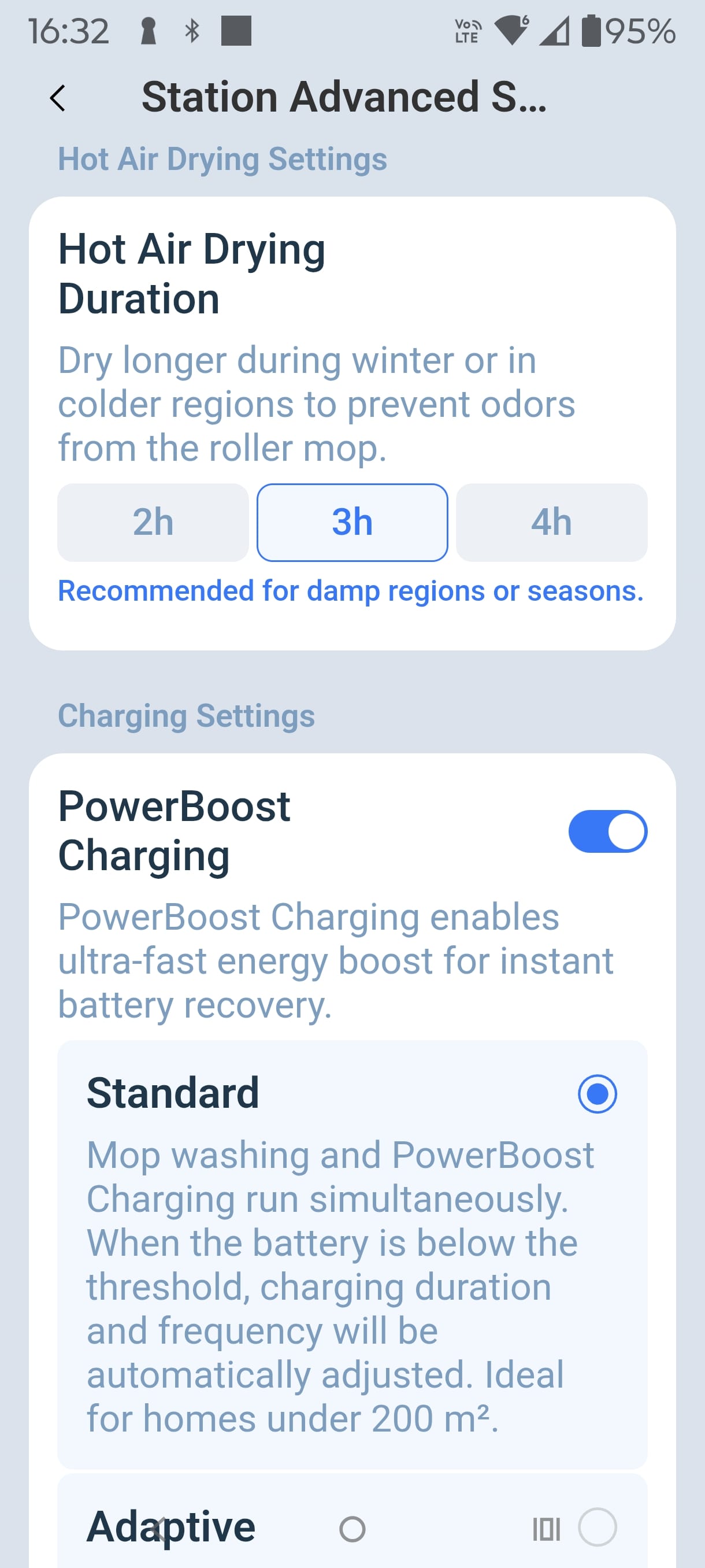 PowerBoost refers to a 16.4/9.5A/155.8W GaN fast charge for a few minutes while the robot docks for a quick mop wash. It claims 3 minutes for a 6% top-up that theoretically enables an ‘unlimited runtime’. It cannot sustain longer periods of PowerBoost.