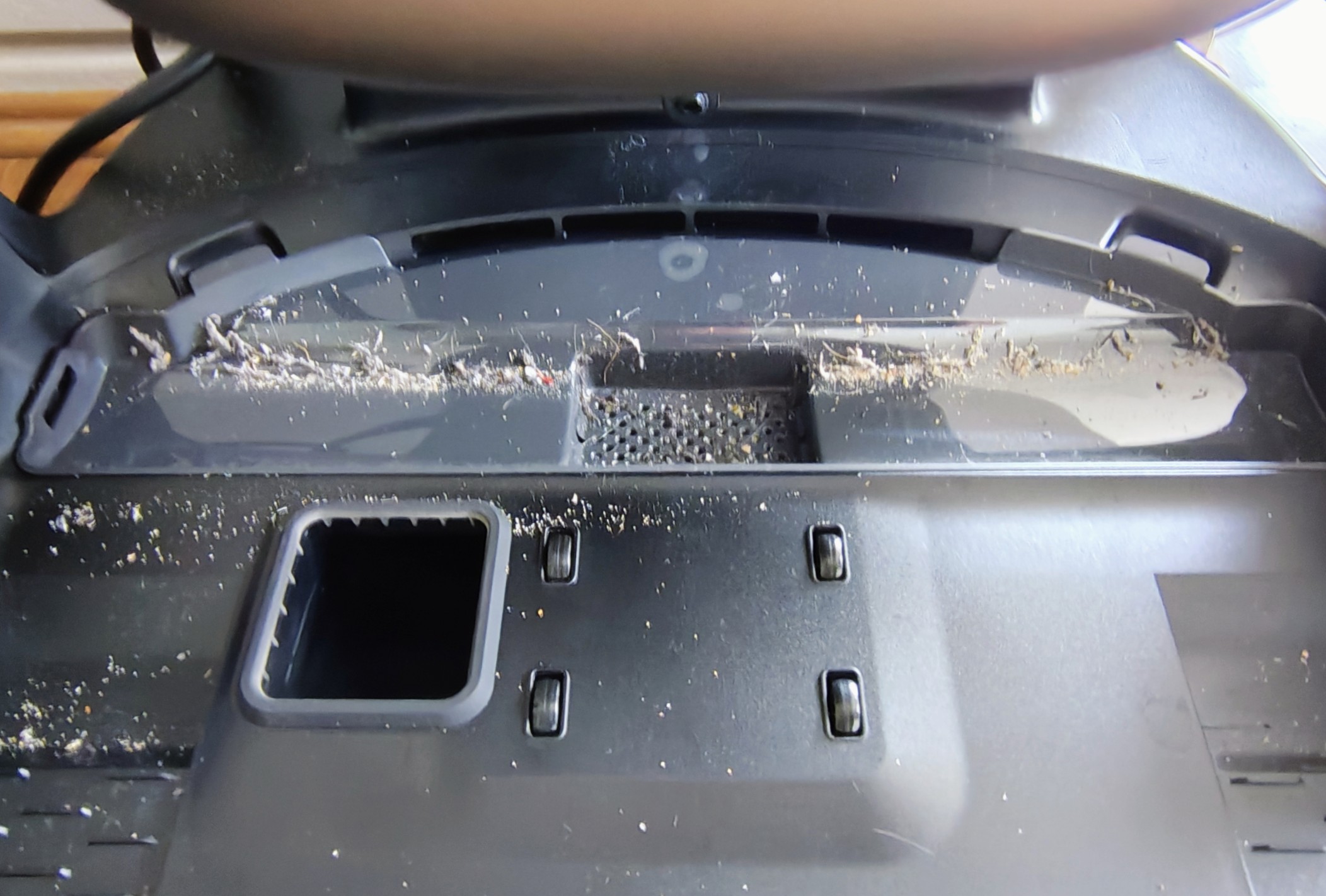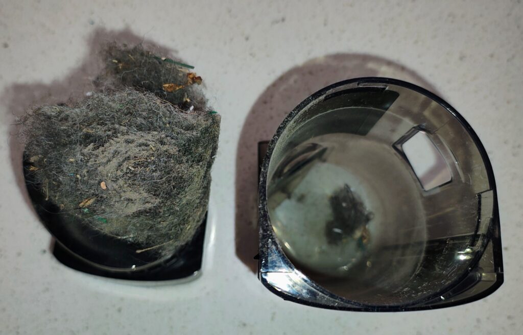 It recognises 40+ mess types – liquids, semi-solids and more, and raises the side whisker and rotating brush so liquid is not sucked into the vacuum, leaving a horrible internal mess to clean (few bots can do this). This is important if you have incontinent pets, and it passed with yellow liquid (emulating urine), meaty Bolognese (emulating diarrhoea) and faux solid pet poo.