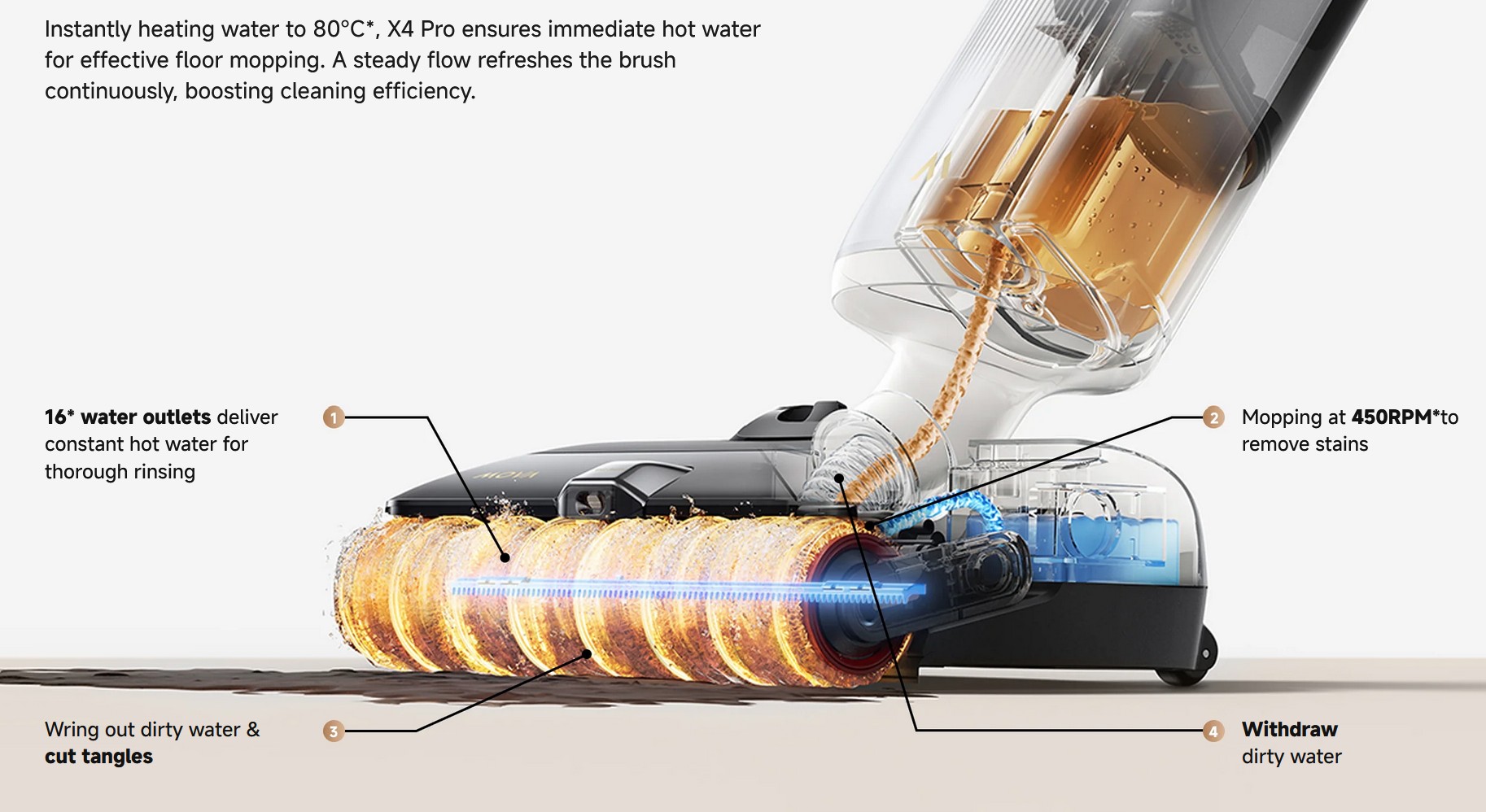 It is typical of any powered mop, and you should read Five tips for choosing a cordless power mop (2024 cleaning guide). We will update this soon with the Mova X4 Pro’s new features.