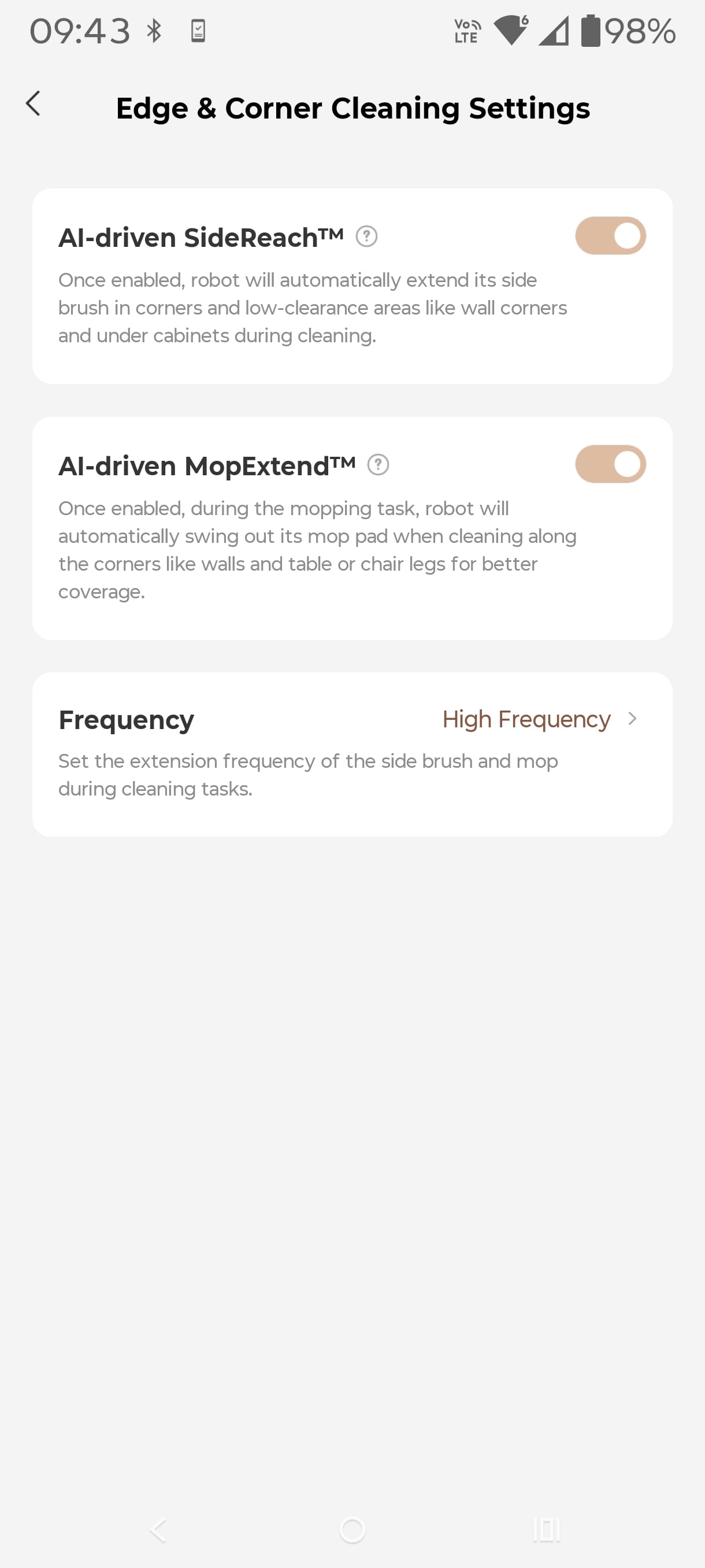 - Pet Zone Cleaning Customisation: Automatically identifies objects around pets, such as food bowls and litter boxes, and lets you choose to avoid or clean nearby through the app. This upgrade adds an extra cleaning pass around pet furniture.