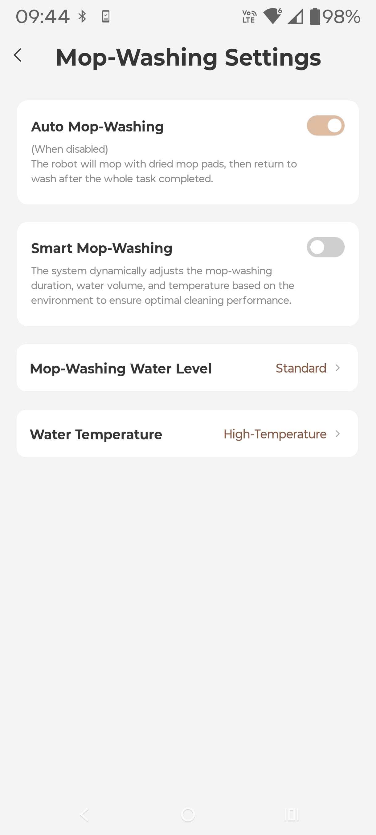 Mop wash is at up to 80° (Dreame 100°), but it is more than enough. Water heating uses solid-state PTC (Positive Temperature Coefficient Ceramic), so it’s safe. The temperature at the mop, however, is closer to 60° – still heaps.