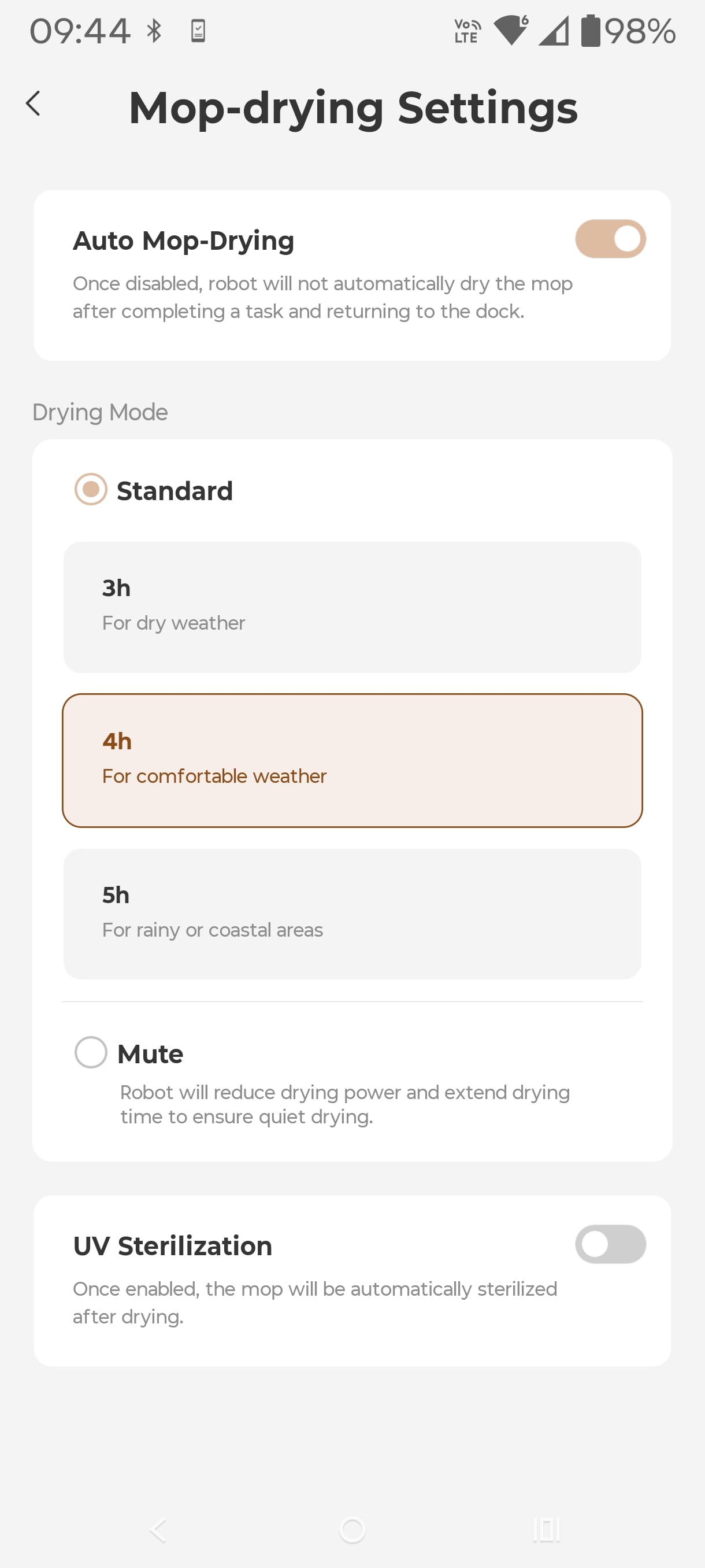 - Mop Drying: <35dB