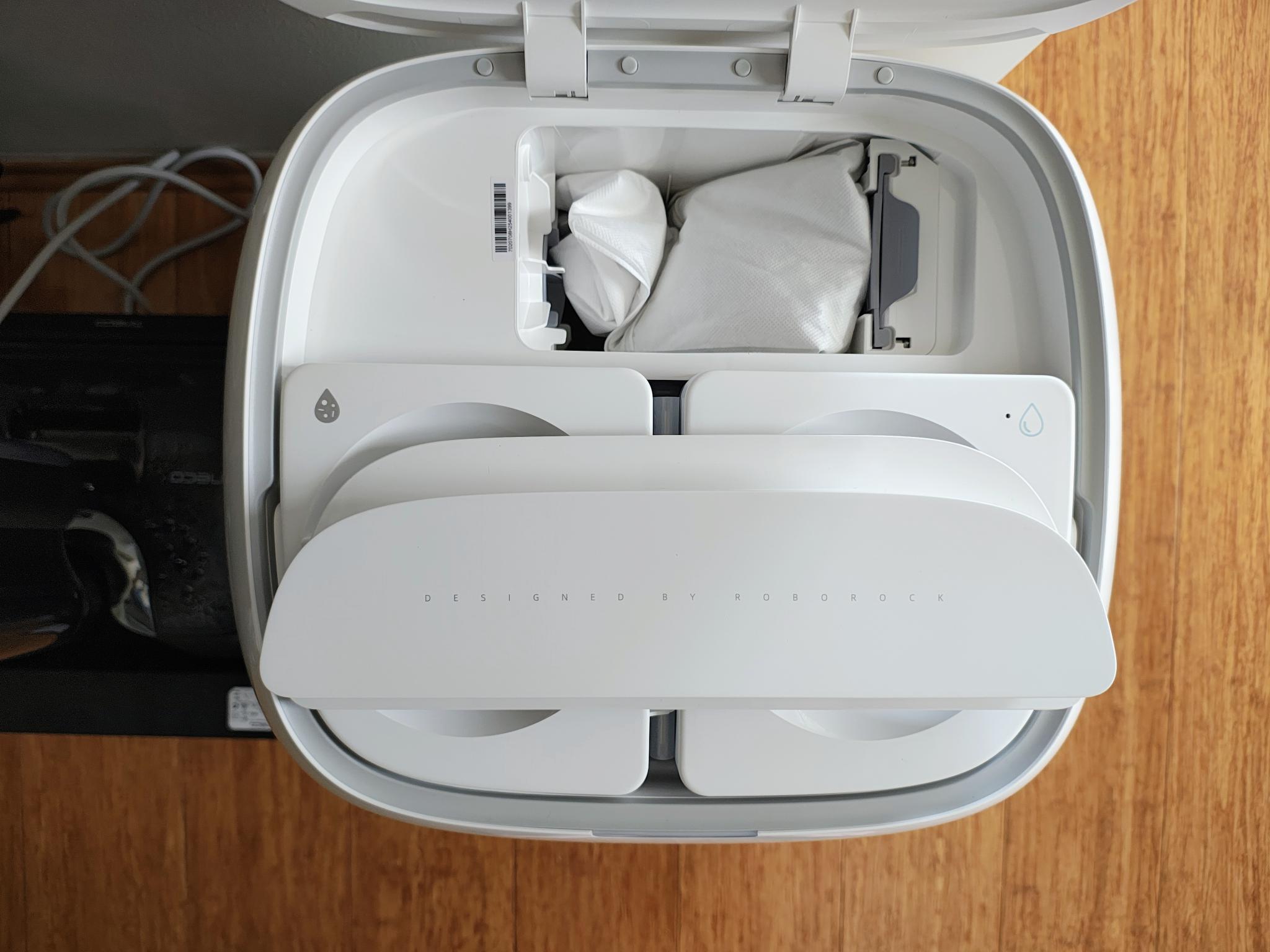 There is a small 102ml internal clean water tank and a 100ml waste water tank, which means it needs to return to base when the clean water is exhausted or every 10 minutes (adjustable by room, or 10/15/20/25 minutes) for a refill and mop wash.