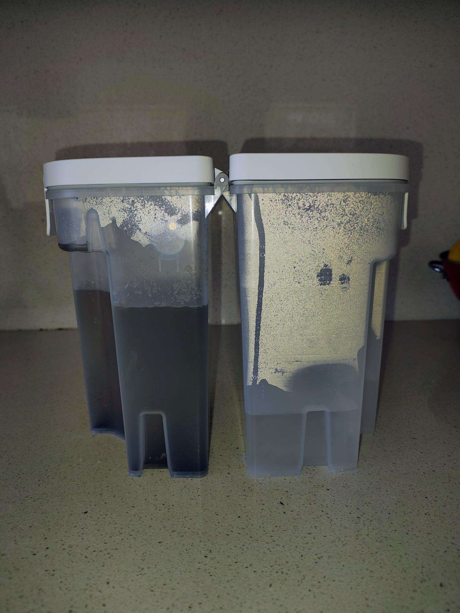 • 50% carpet and 50% hard floor: 50m2 in 65 minutes, and battery use 68%. Mop wash x 3