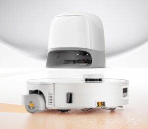 I rather like the curvy, flowing, streamlined dock of the Roborock Qrevo Curv series (well, there is only the Curv and Curve 2 Flow). The robot is 353 x 353 x 119 mm – about average girth but higher than many, limiting cleaning under low furniture and cupboard overhangs.