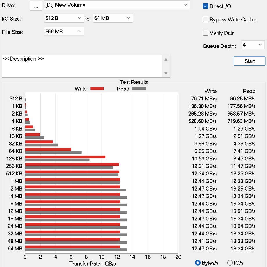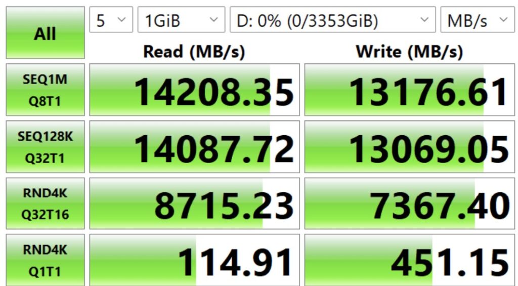 CDM is often used as it shows the peak speeds, not the sustained data transfer speeds. In any case, this is the fastest drive I have seen. More importantly, it handles larger reads/writes at speeds well over maximum PCIe 4.0 speeds.