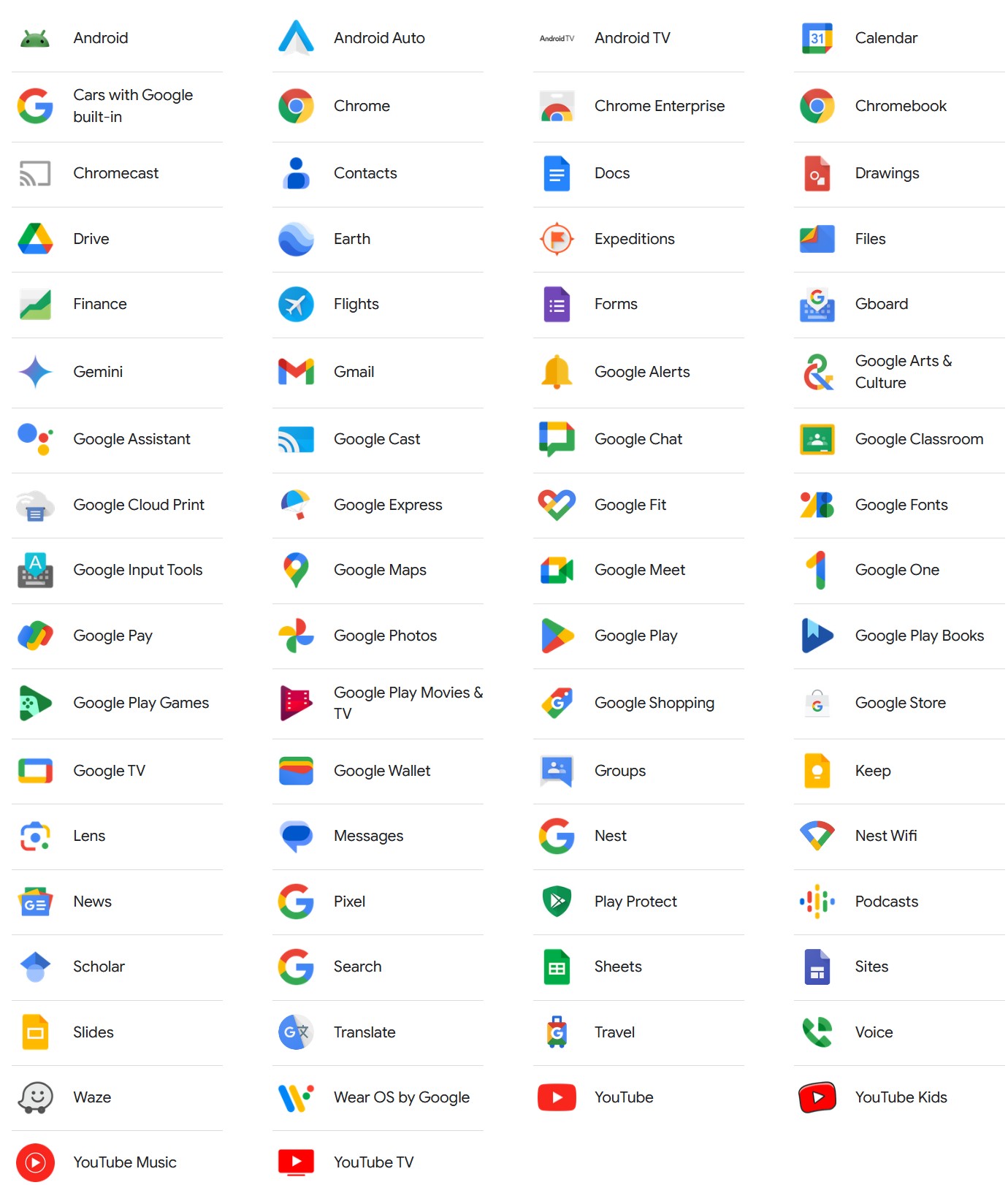 • Its apps like Gmail, G-suite, Contacts, Calendar, Messages, Maps, Chrome, Meet, Fit, Wallet