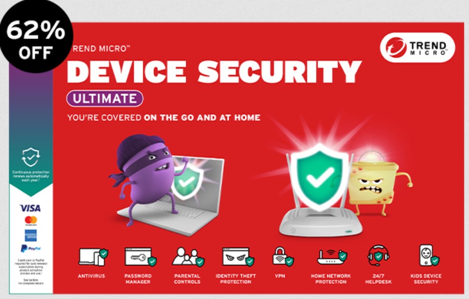 We recently reviewed Trend Micro’s top package Trend Micro Device Security Ultimate – excellent broad-spectrum protection (website here), which is the ‘Swiss Army Knife’ approach. We have only been using it for a month, but its unique hardware-based Home Network Security is extremely good. It costs $37.40 each for ten devices for two years – very cost-effective. If you don’t need everything, then Trend Micro Security Basic is good value, covering six devices for two years for <$15 each.